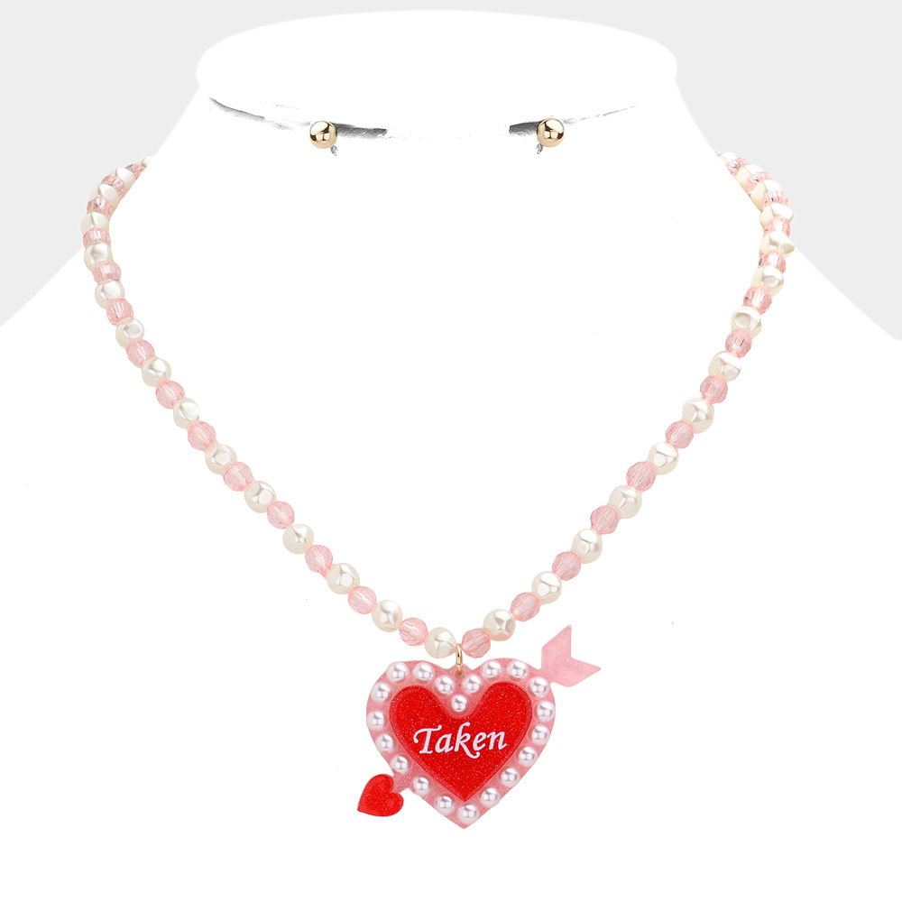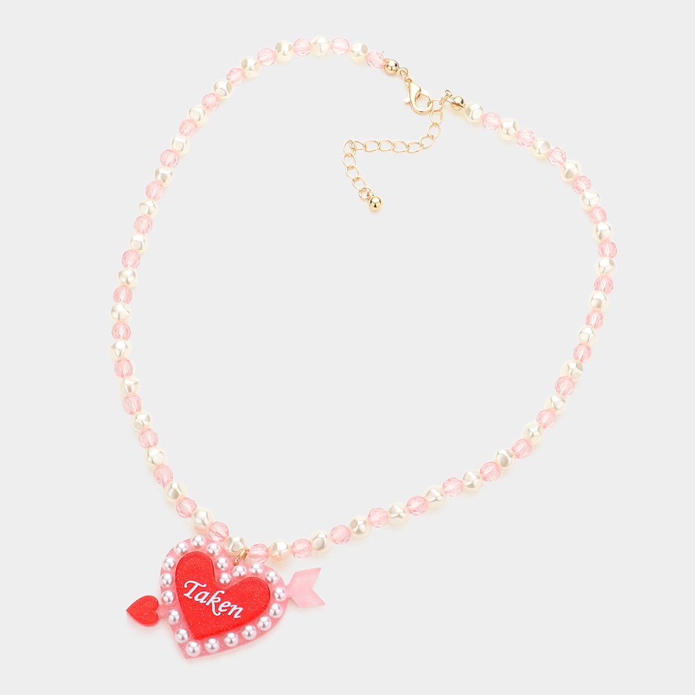 Taken Message Glittered Resin Heart Arrow Pearl Beaded Necklace
