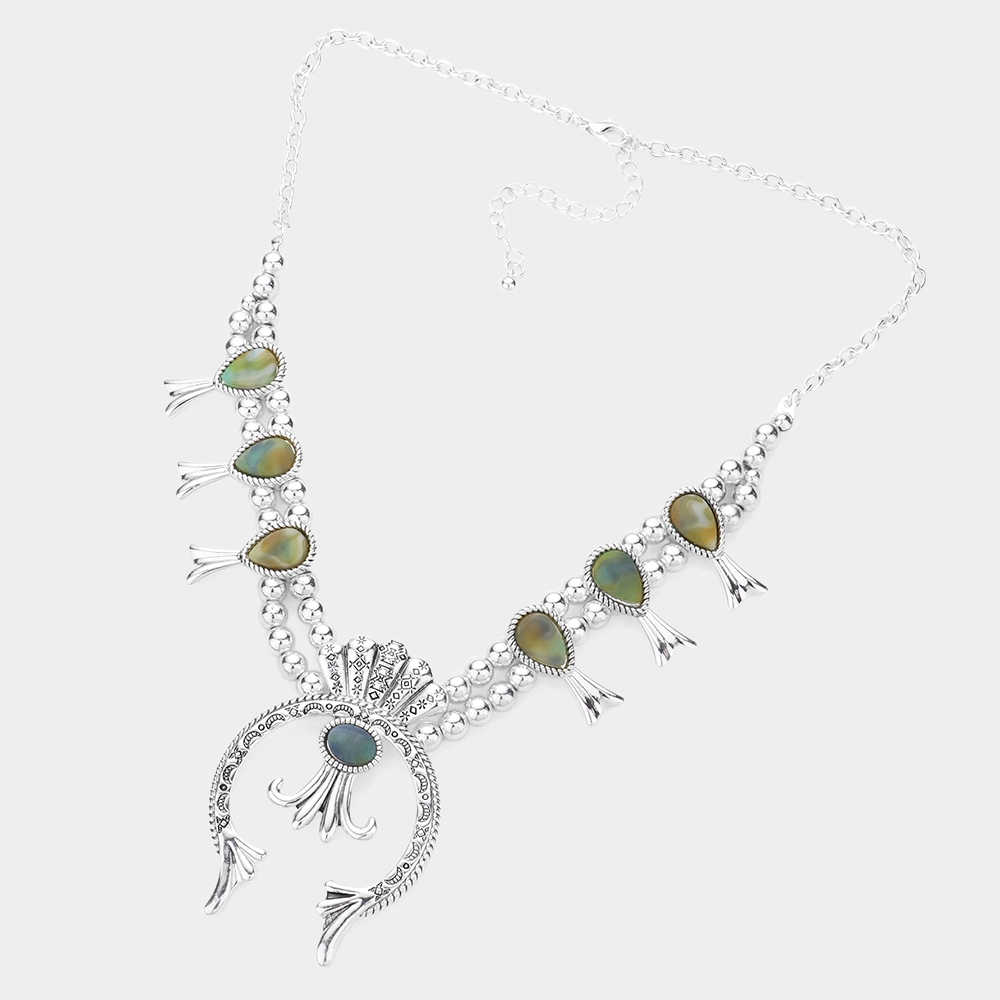 Glittered Teardrop Accented Squash Blossom Antique Metal Necklace