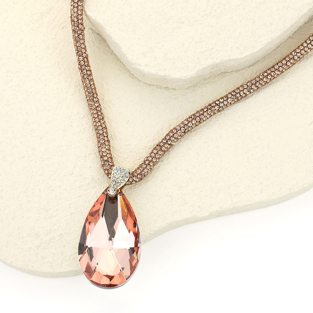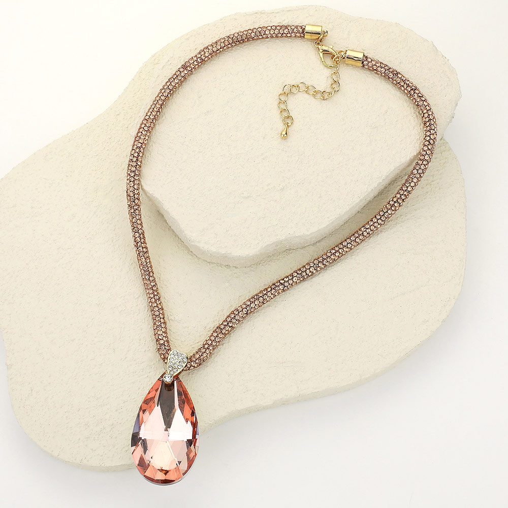 Teardrop Faceted Stone Pendant Bling Studded Necklace