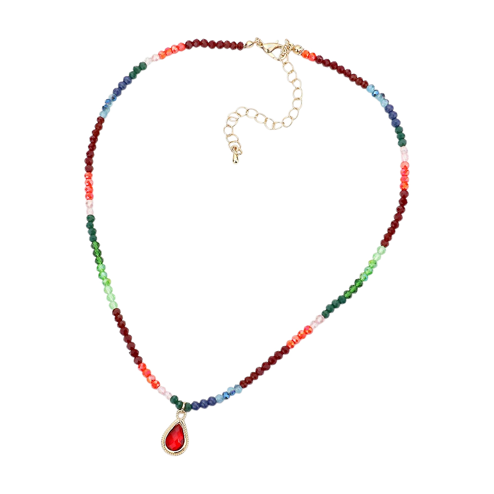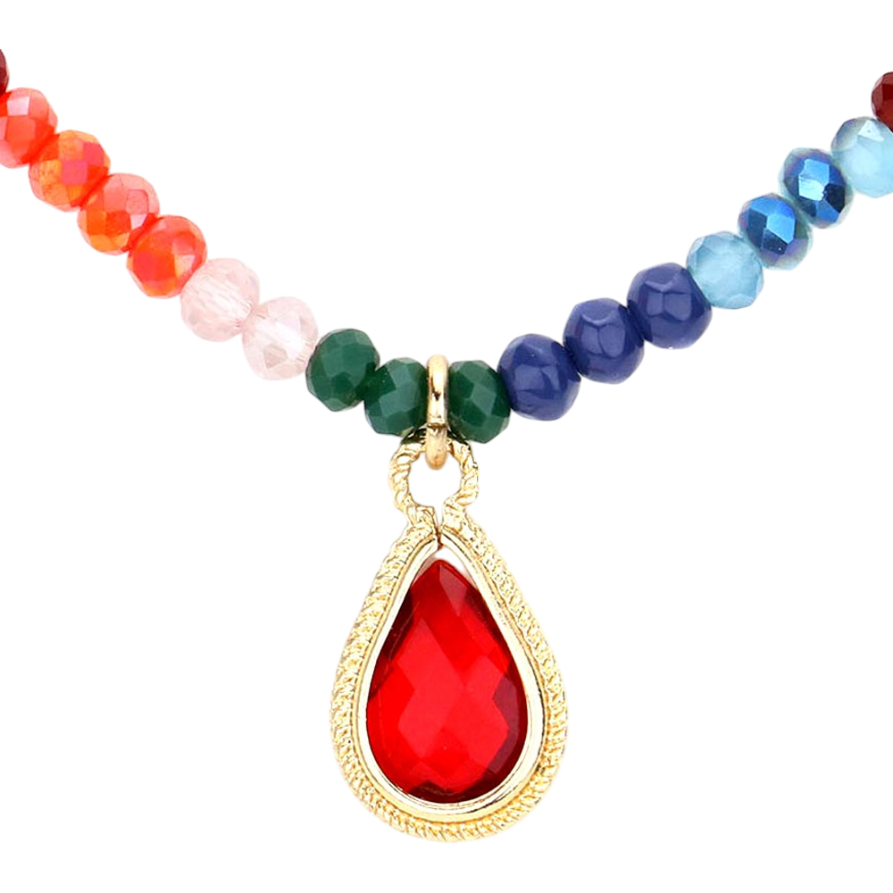 Teardrop Glass Stone Pendant Faceted Beaded Necklace