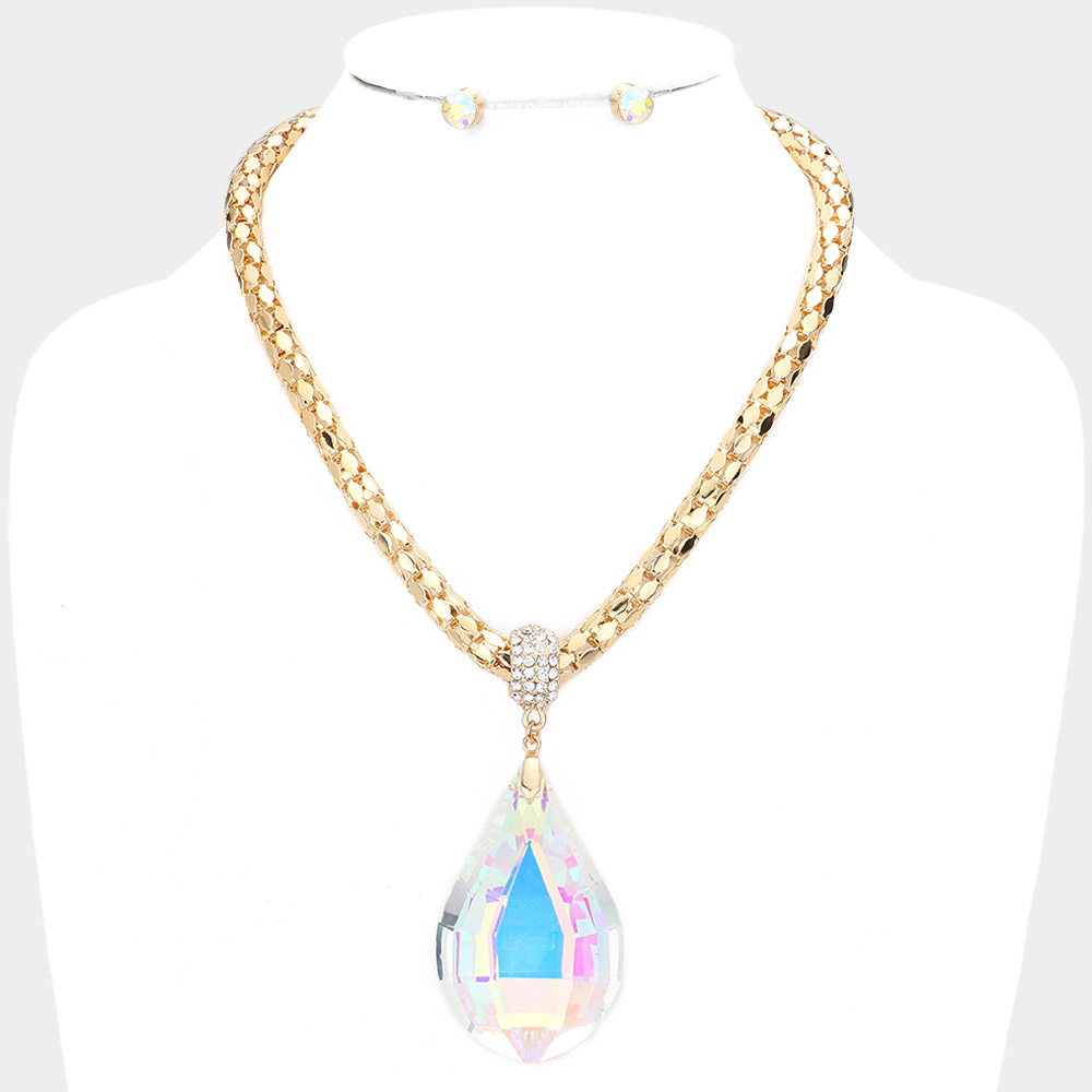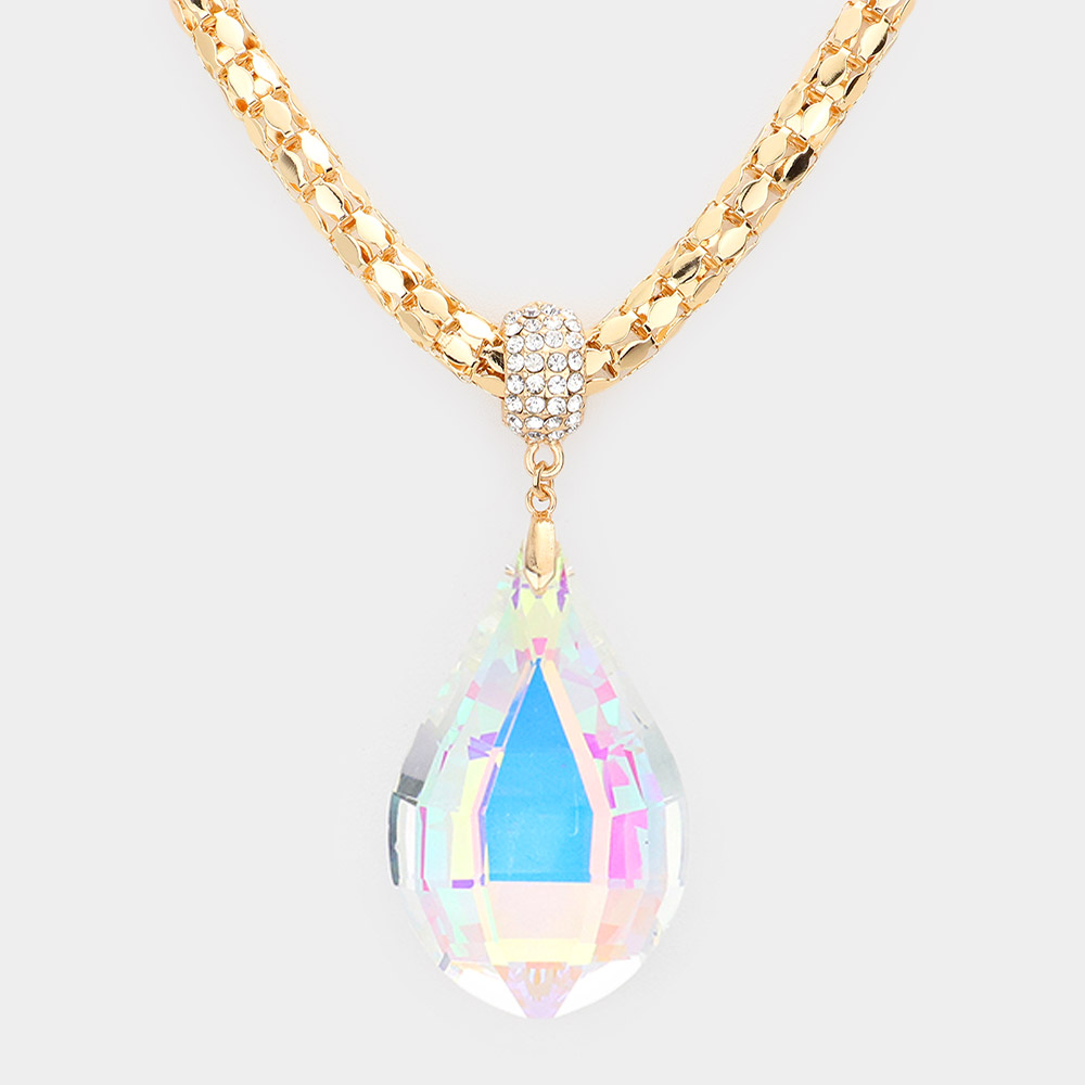 Teardrop Marquise Stone Pointed Rhinestone Paved Necklace