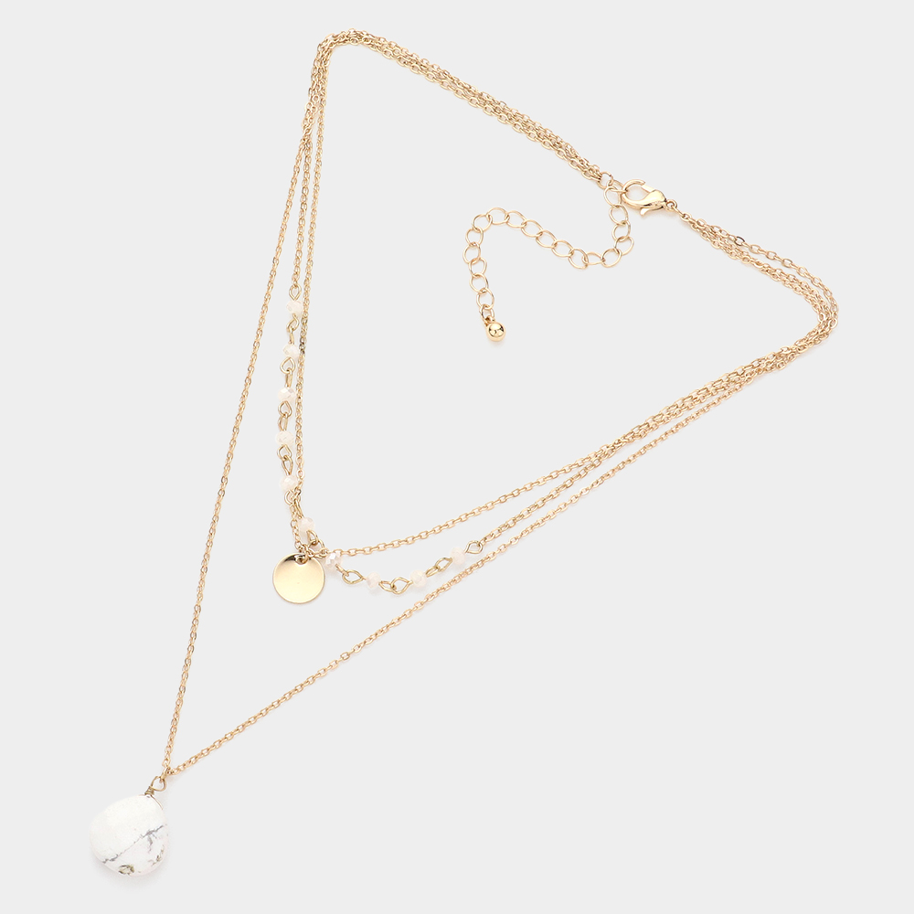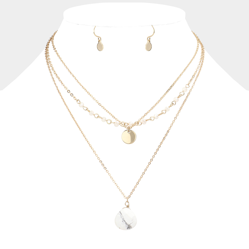 Teardrop Natural Stone Pendant Triple Layered Necklace