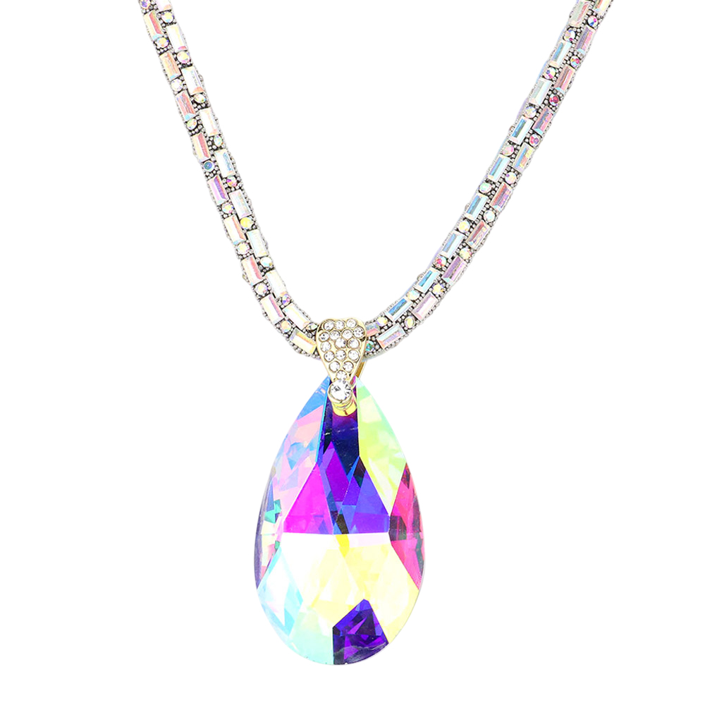 Flower Stone Embellished Teardrop Stone Dangle Evening Earrings