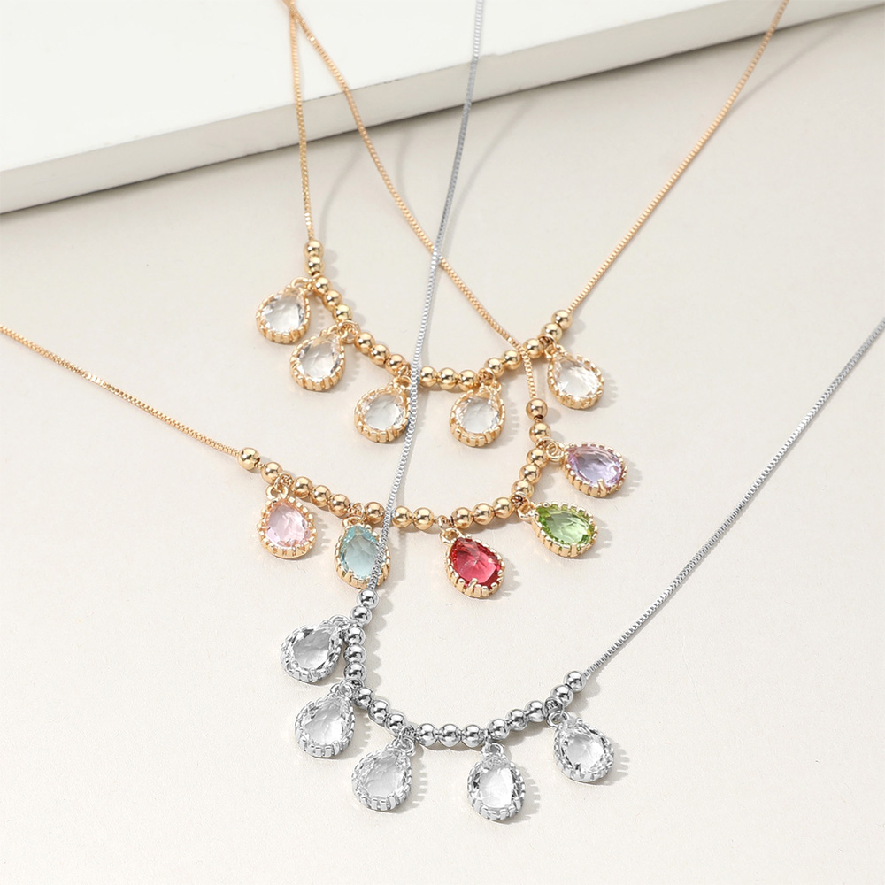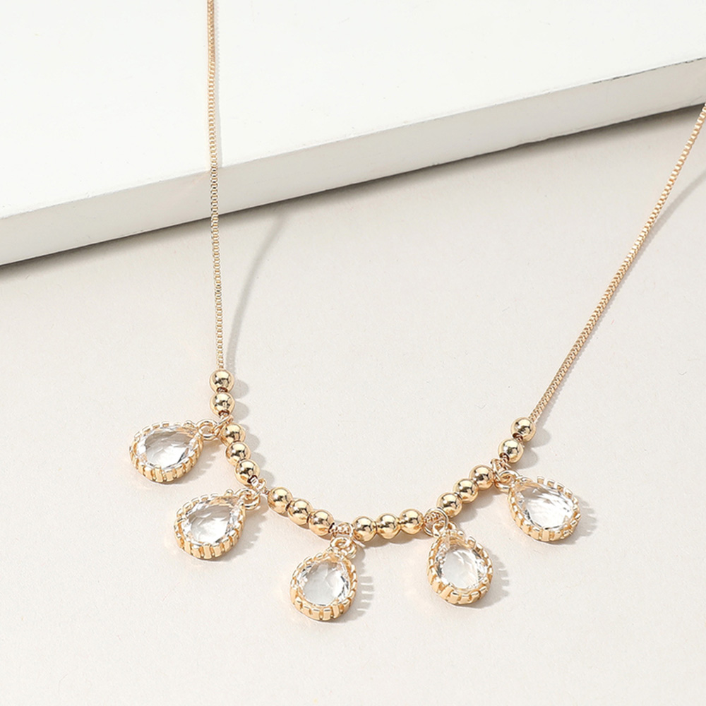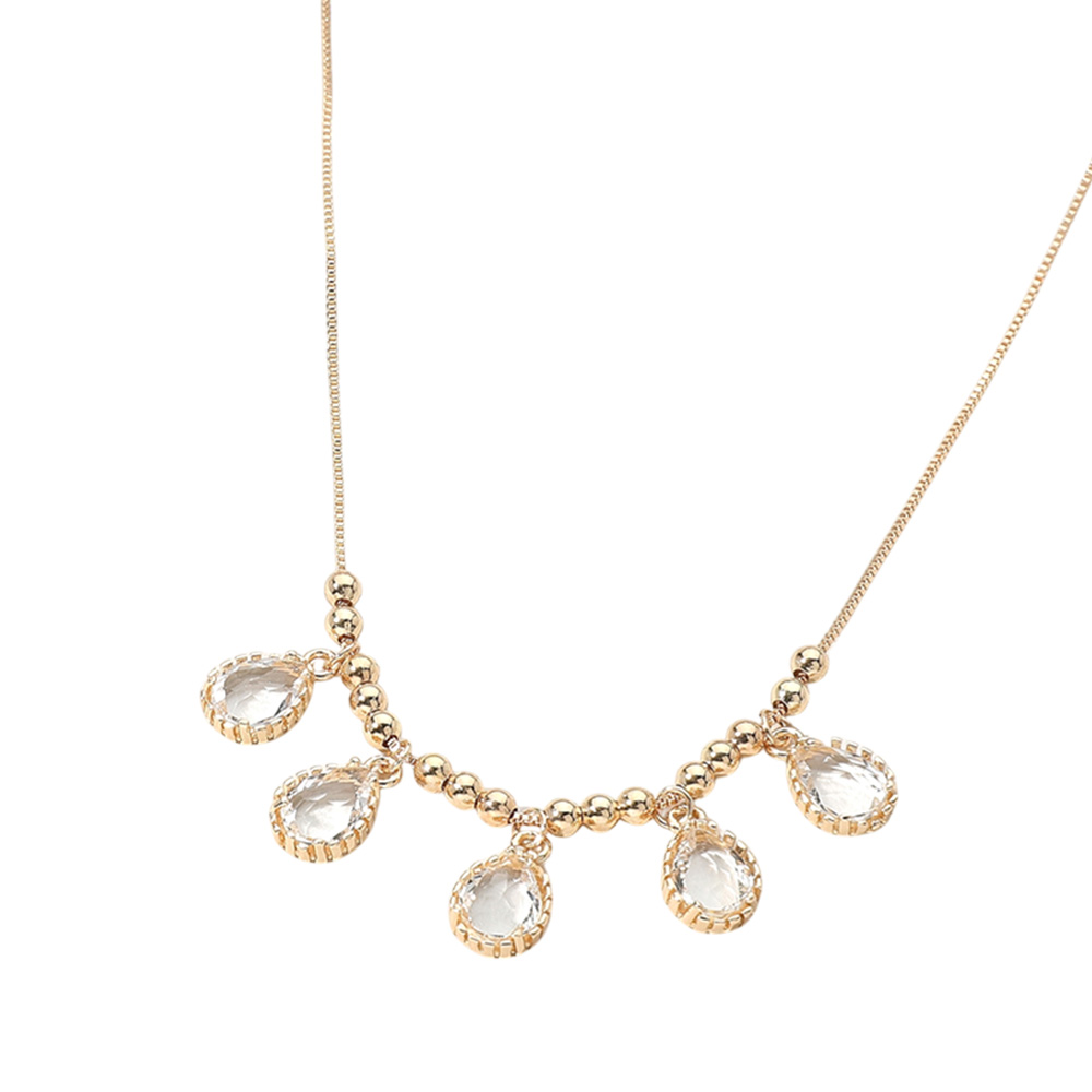 Teardrop Stone Cluster Charm Beaded Necklace