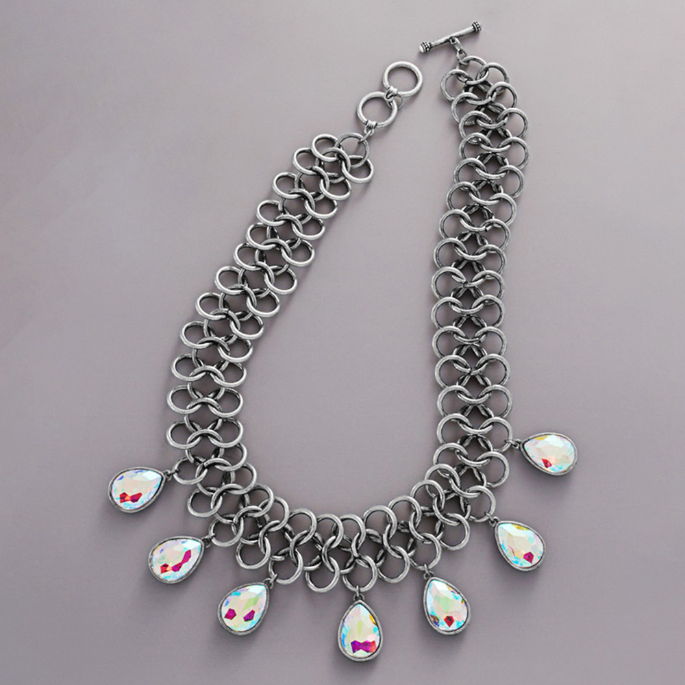 Teardrop Stone Cluster Embellished Chunky Chain Toggle Necklace