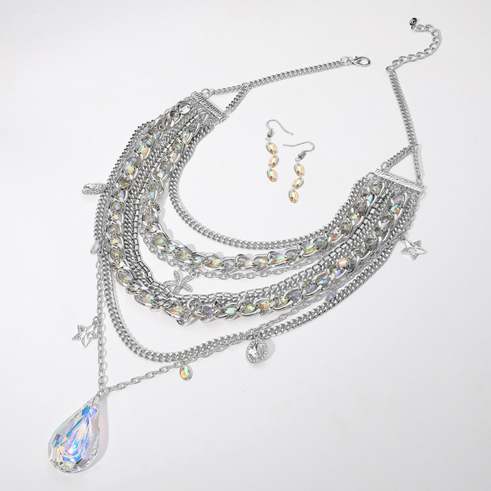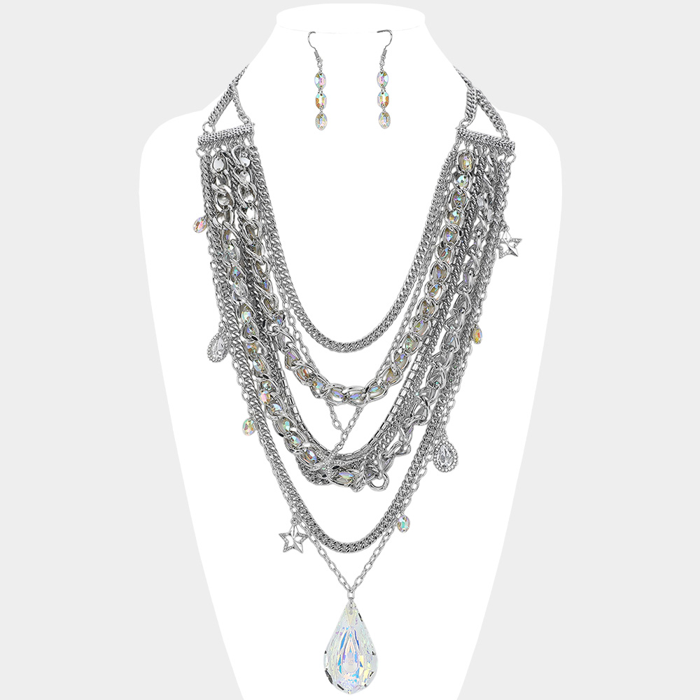 Teardrop Stone Pendant Pointed Star Starfish Charm Embellished Multi Layered Statement Necklace