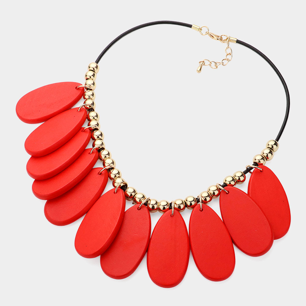 Teardrop Wood Beaded Statement Necklace