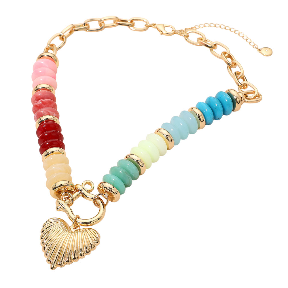 Details • Necklace Size : 17" + 3" L • Decor Size : 2" L • Add a touch of joy and sophistication with this multi-color bead heart pendant necklace. Featuring a radiant mix of tones and a sleek heart charm centerpiece, this necklace blends playful vibrancy with refined elegance—perfect for elevating both casual and chic outfits. • Lead and Nickel Compliant