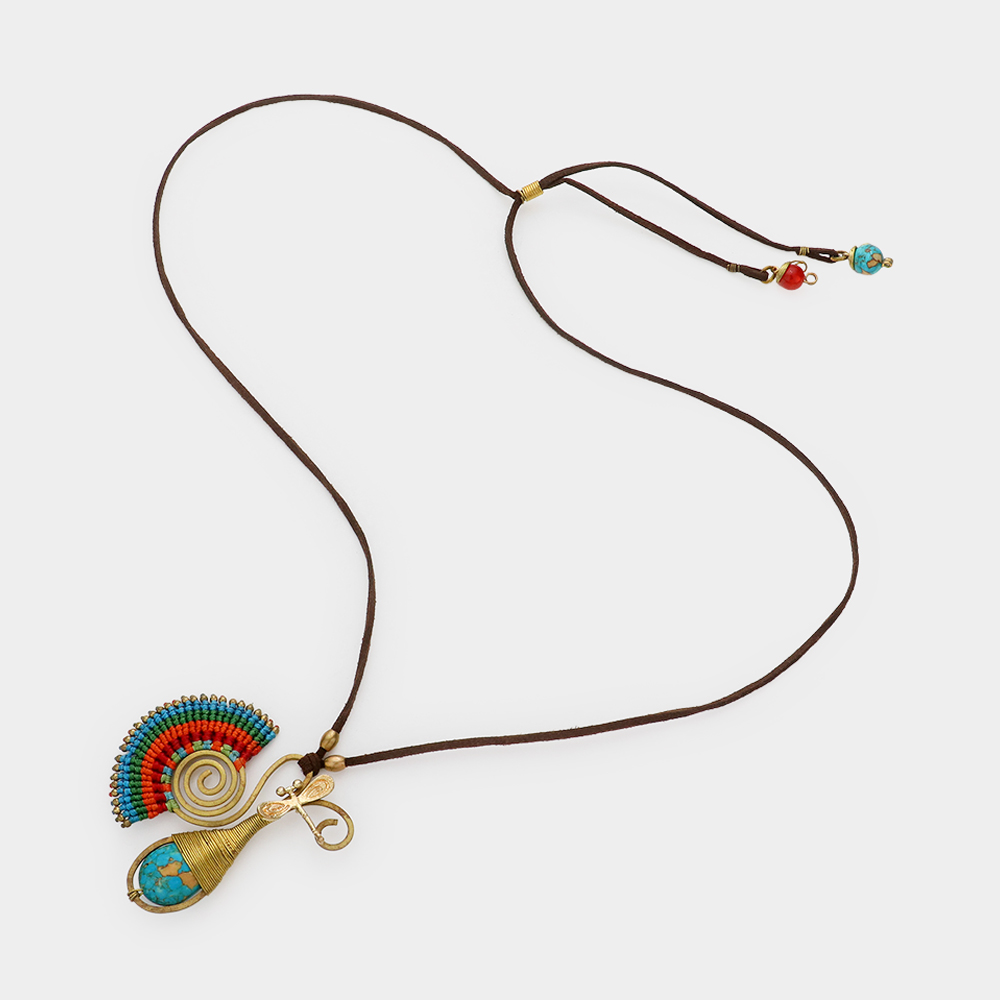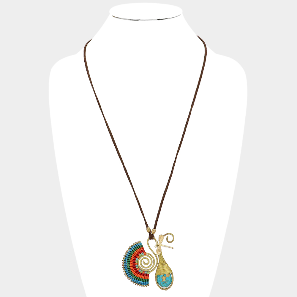 Thread Coiled Fan Swirl Metal Wire Drop Necklace