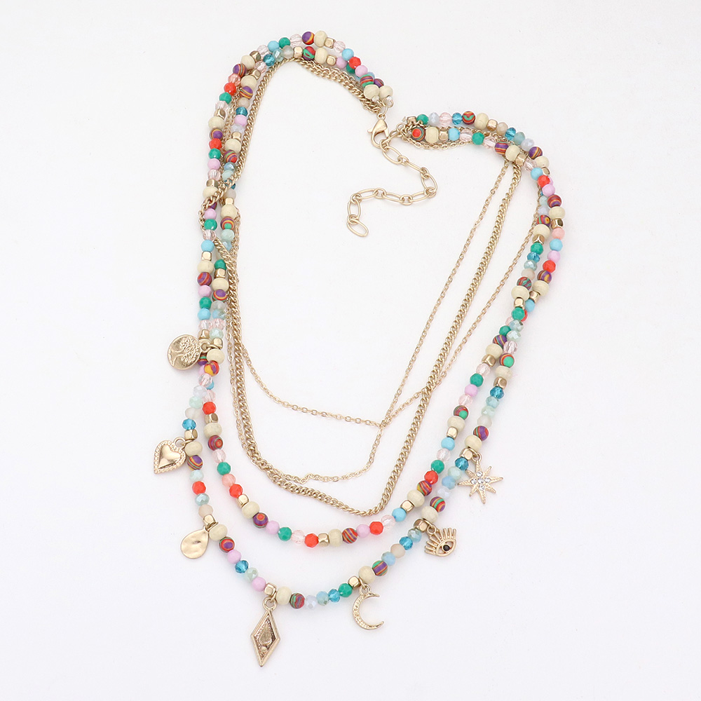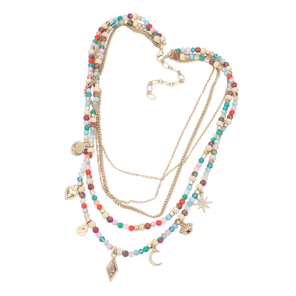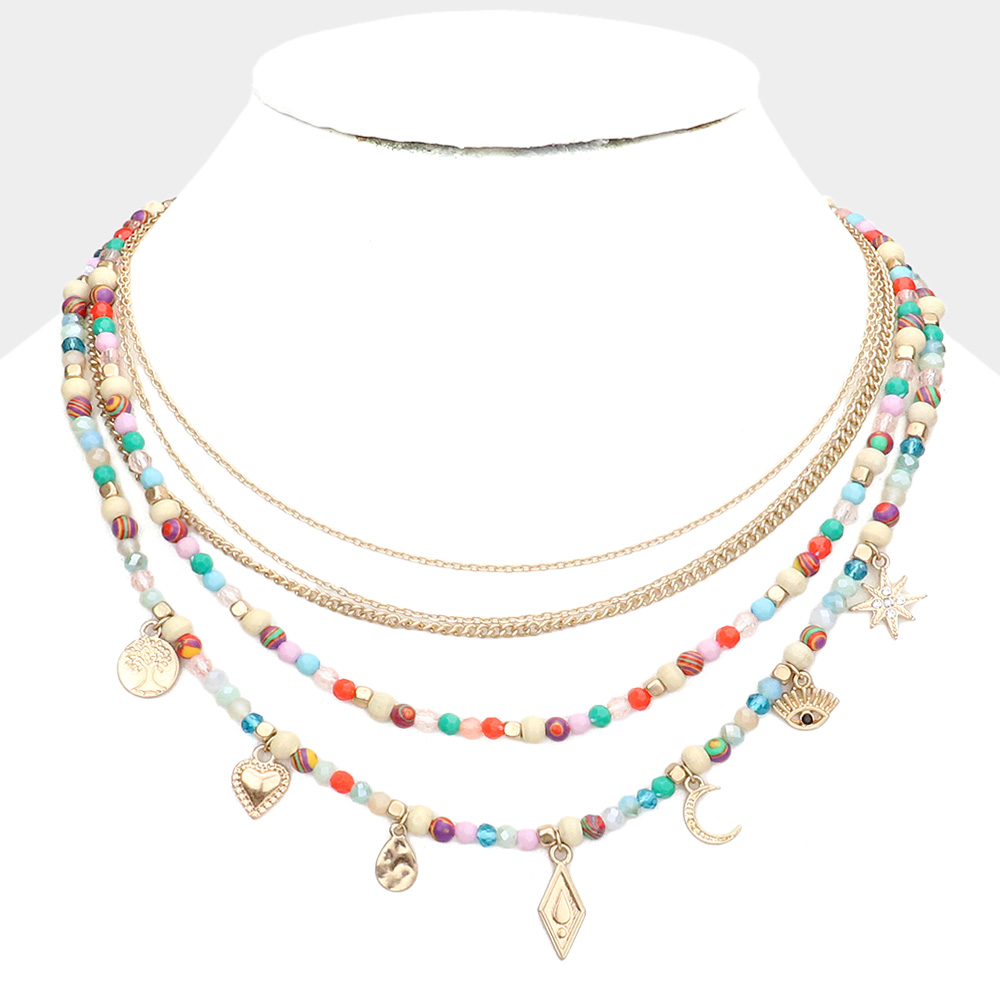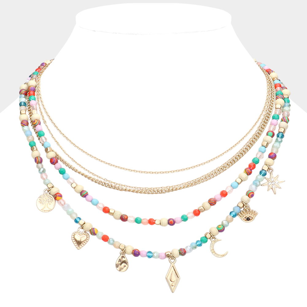 Tree of Life Heart Teardrop Crescent Moon Evil Eye North Star Pendant Station Multi Layered Necklace
