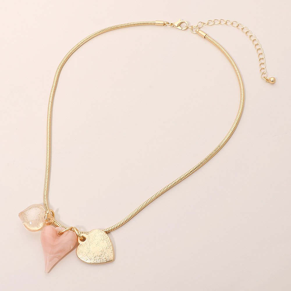 Details • Necklace Size : 16.5" + 3.5" L • Decor Size : 1.25" L • Stylish heart charm pendant necklace featuring layered dangling accents for a romantic yet modern look. Designed to elevate everyday outfits or special occasion styling, this versatile necklace offers easy layering appeal and makes a thoughtful gift choice for trend-driven accessory collections. • Lead and Nickel Compliant