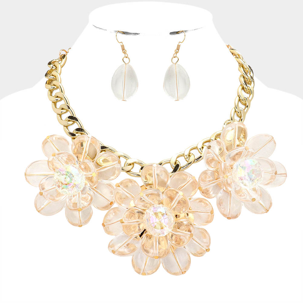 Triple Lucite Flower Necklace