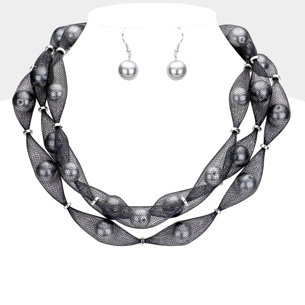 Rhinestone Paved Geometric Square Pendant Pearl Necklace