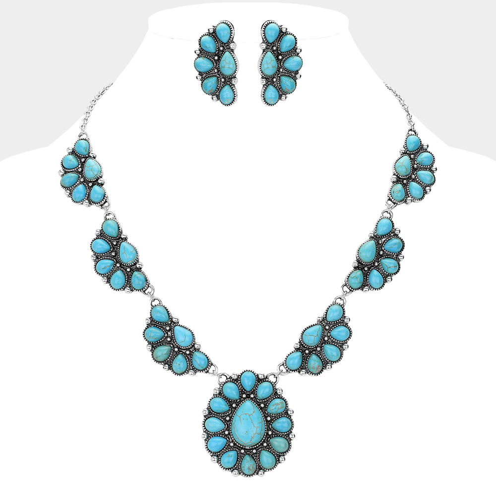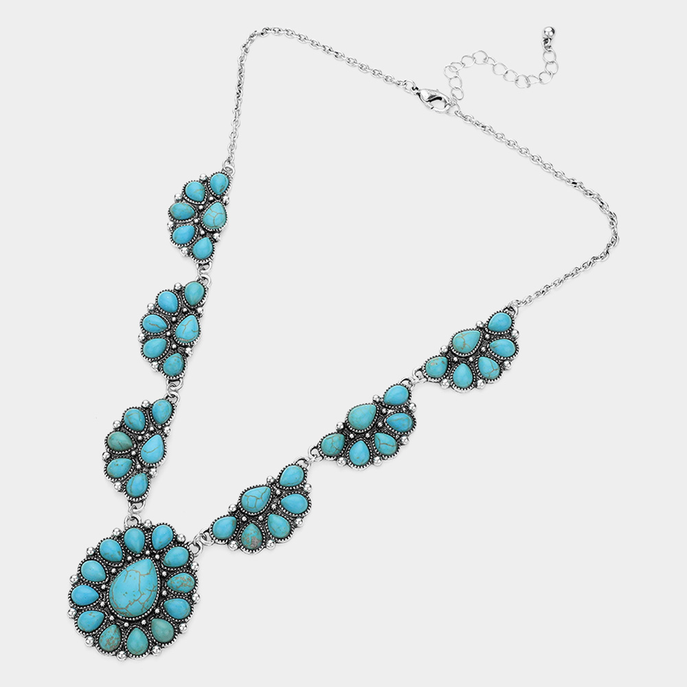 Two Row Western Square Turquoise Stone Beaded Stretch Bracelet