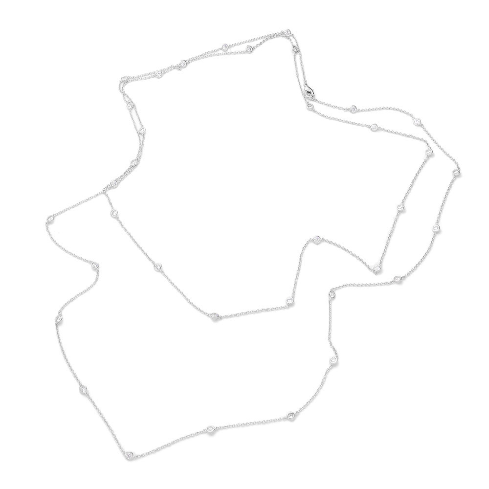 White Gold Dipped Brass Metal Round CZ Station Necklace