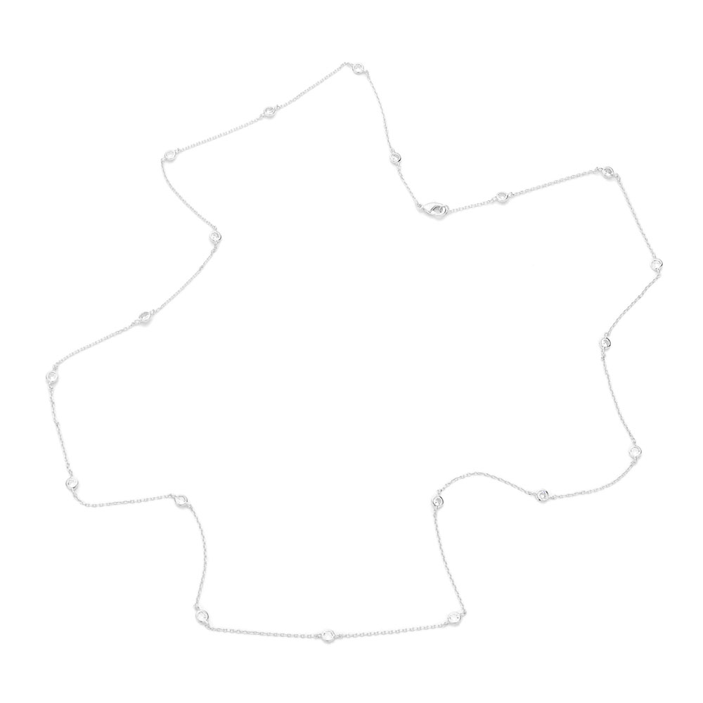 White Gold Dipped Brass Metal Round CZ Station Necklace White Gold Dipped Brass Metal Round CZ Station Necklace White Gold Dipped Brass Metal Round CZ Station Necklace