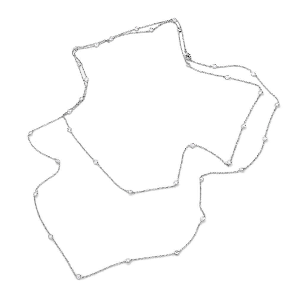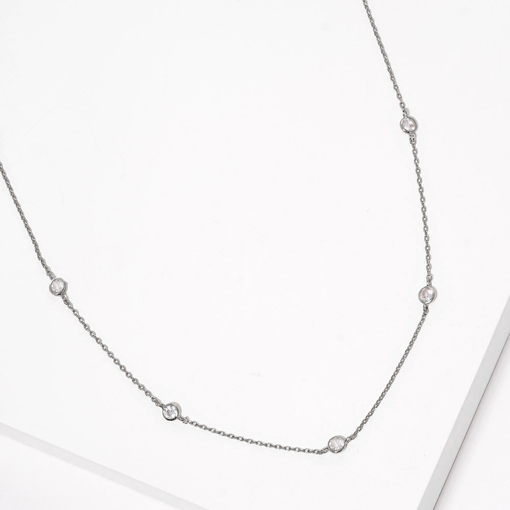 White Gold Dipped Brass Metal Round CZ Station Necklace