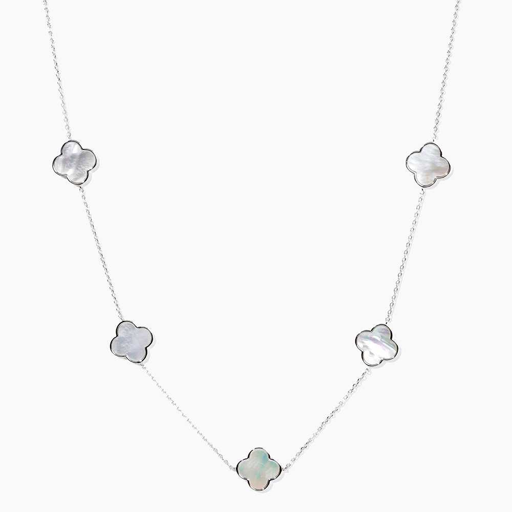 White Gold Dipped Mother of Pearl Quatrefoil Station Necklace