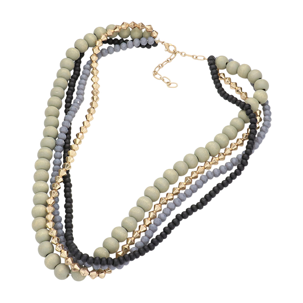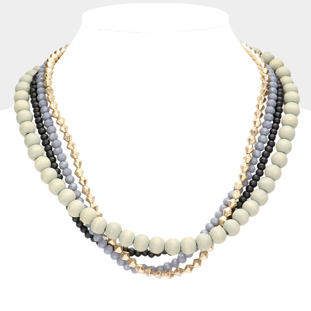 Wood Ball Beaded Layered Necklace
