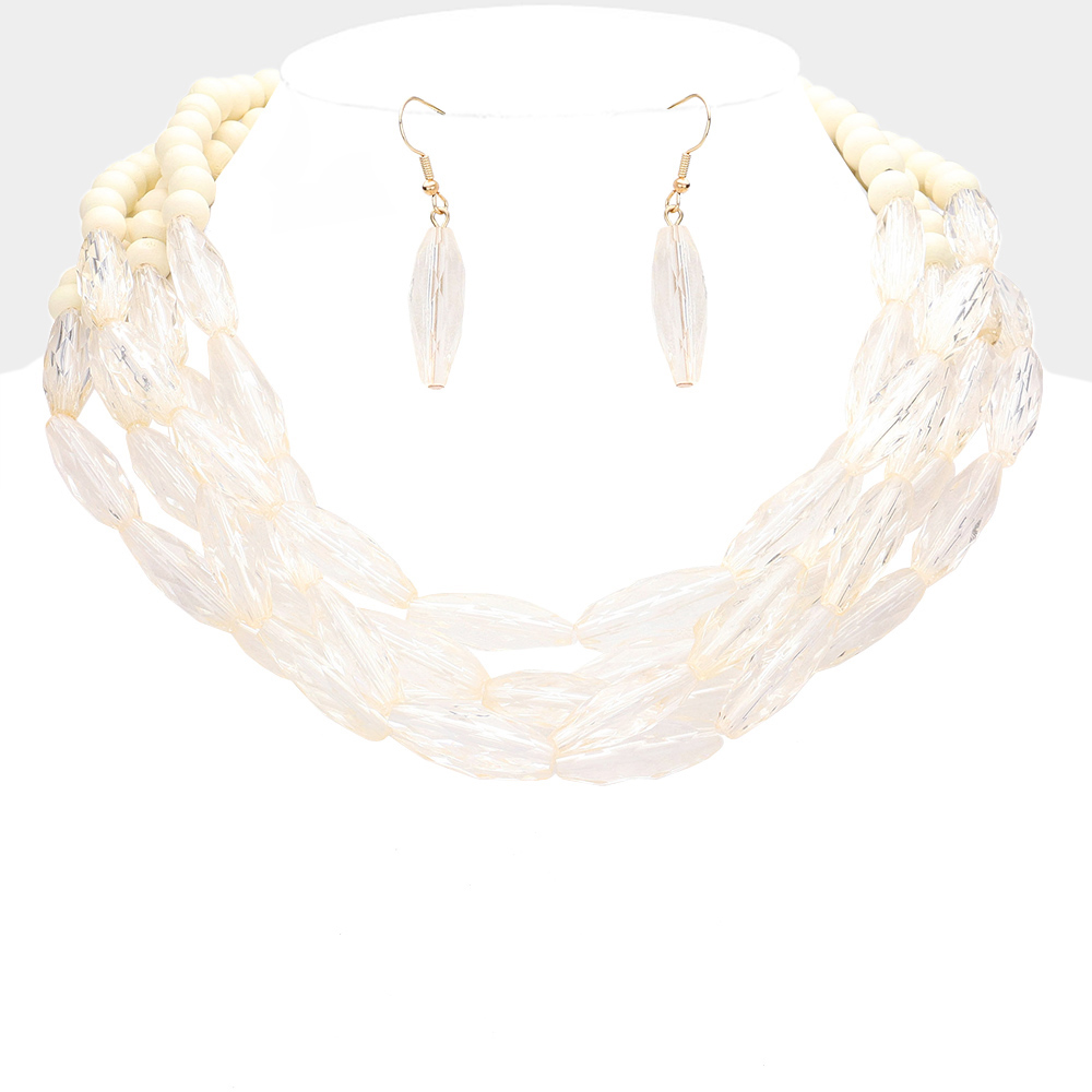 Shamballa Wood Ball Faceted Beaded Double Layered Necklace