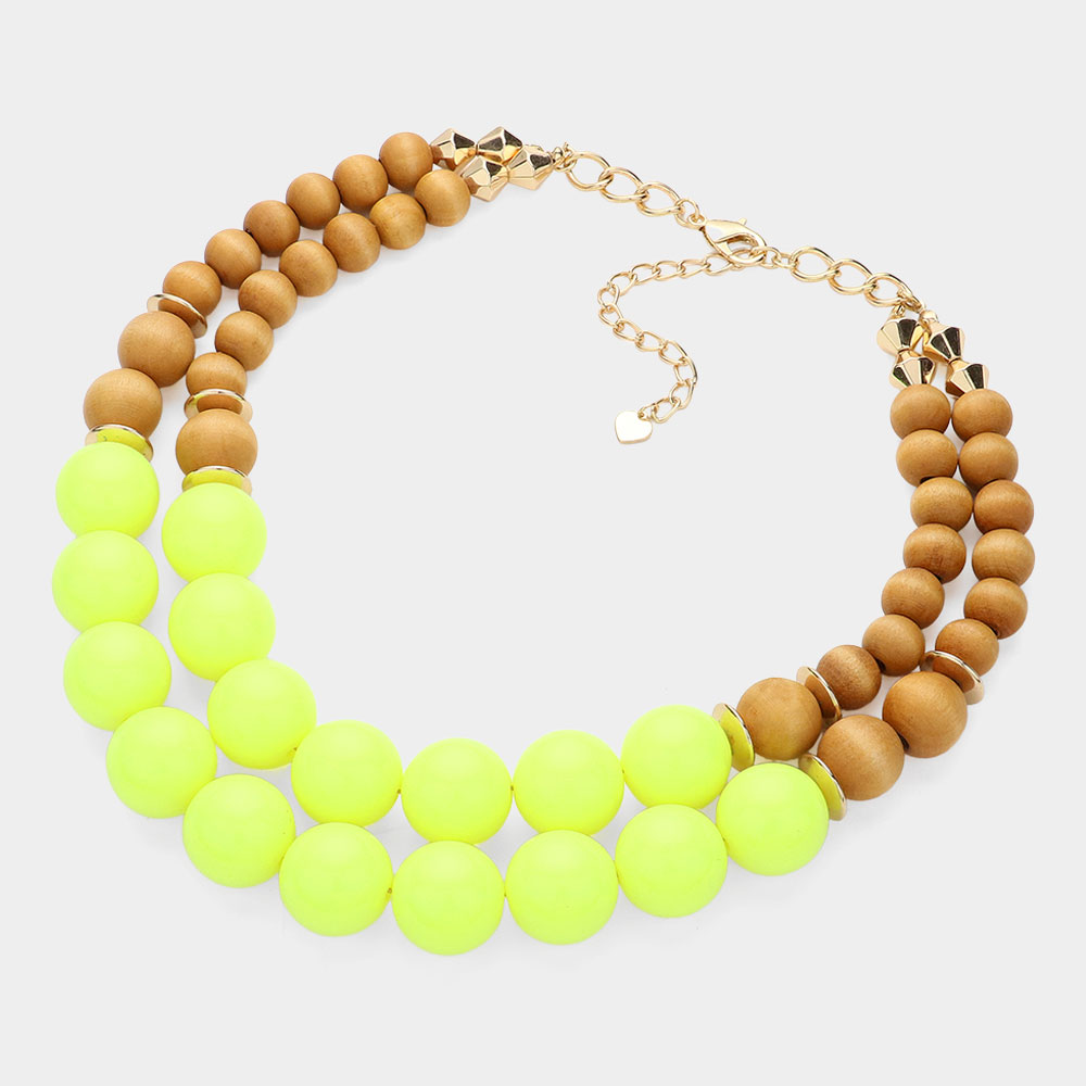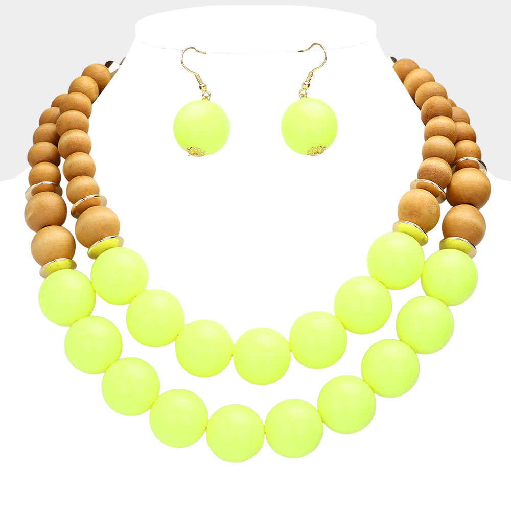 Frosted Metal Ball Accented Wood Beaded Open Circle Dangle Earrings