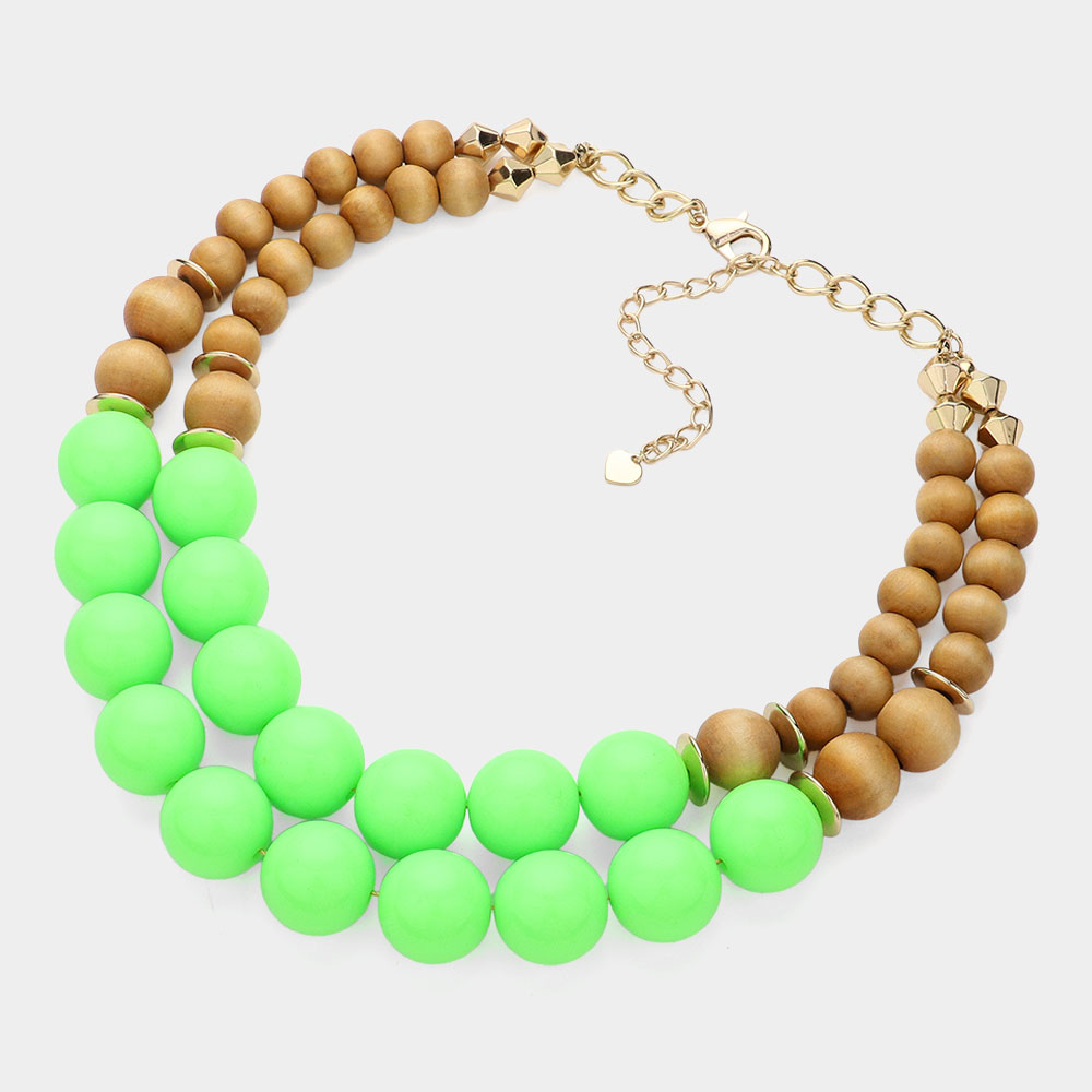 Wood Ball Double Strand Statement Necklace
