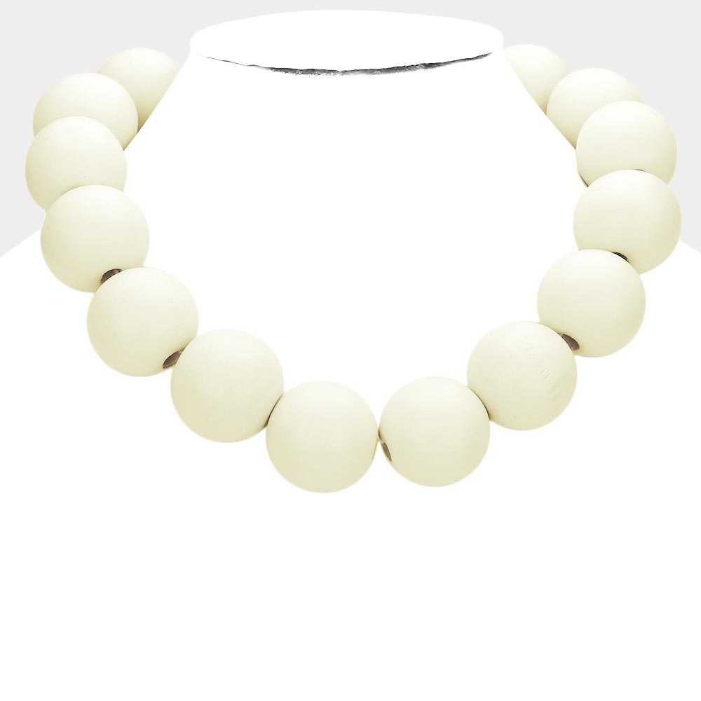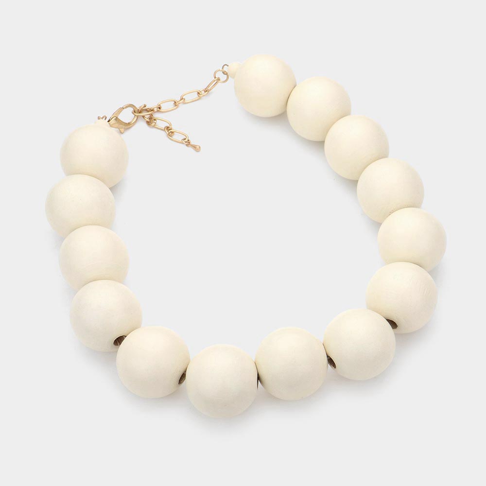 Teardrop Wood Beaded Statement Necklace