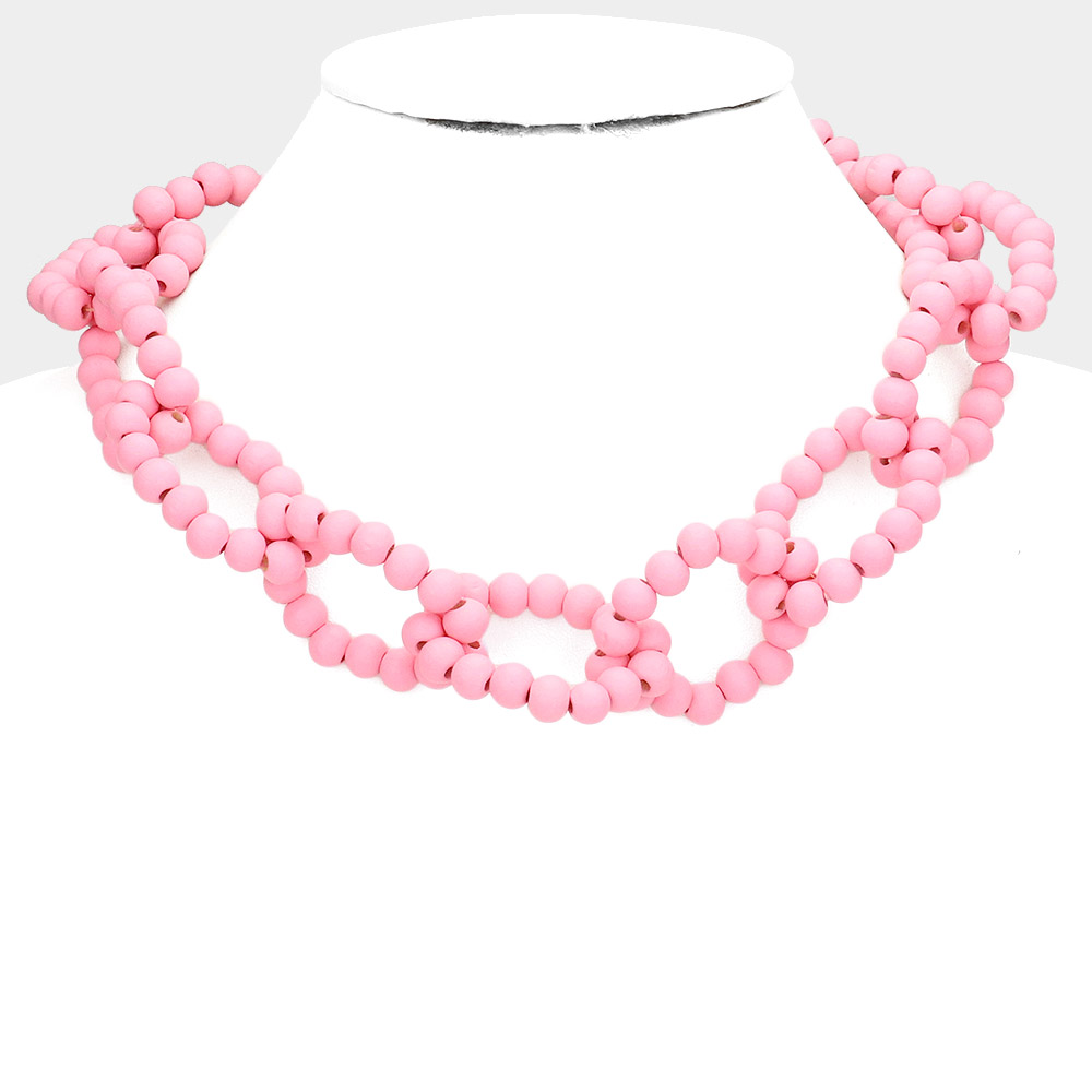 Colored Wood Open Metal Oval Link Triple Layered Necklace