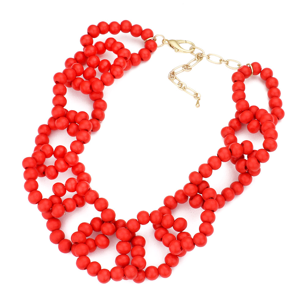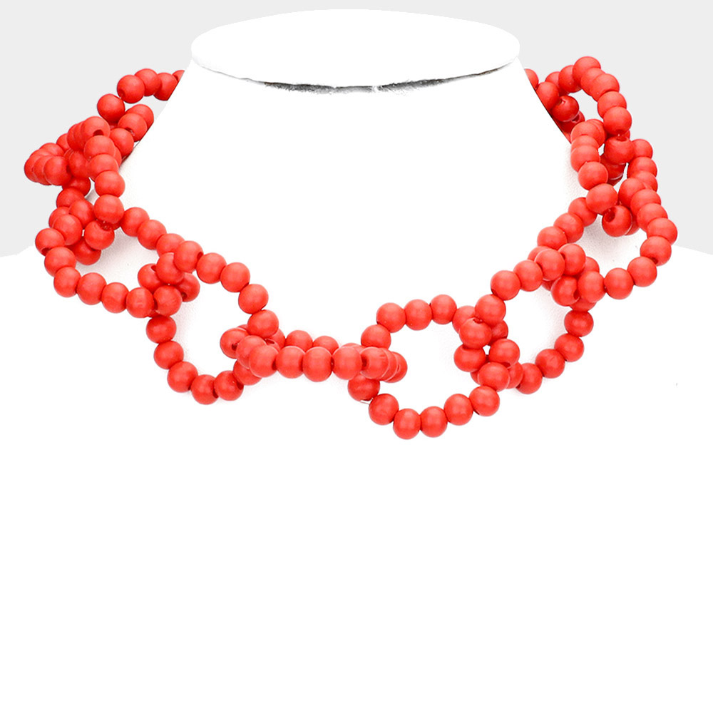 Double Horn Evil Eye Centered Pendant Wood Beaded Multi Layered Necklace