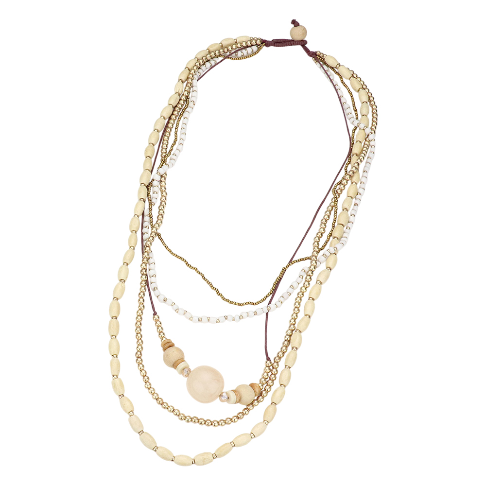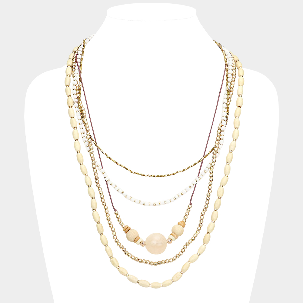 4PCS- Wooden Metal Ball Beaded Stretch Multi Layered Bracelets
