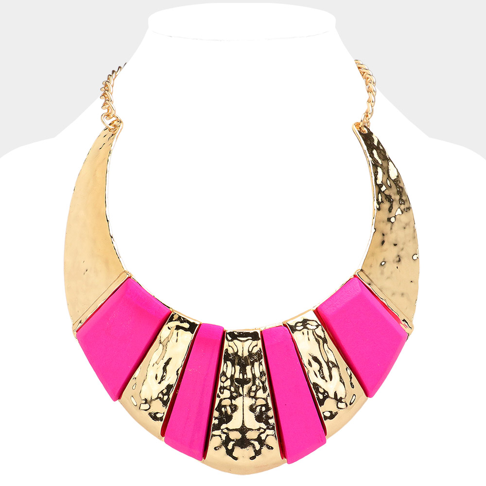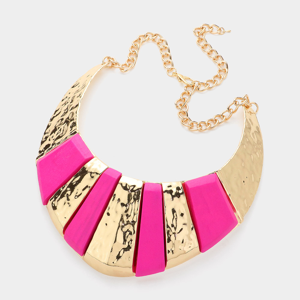 Wood Pointed Hammered Metal Curved Bib Necklace