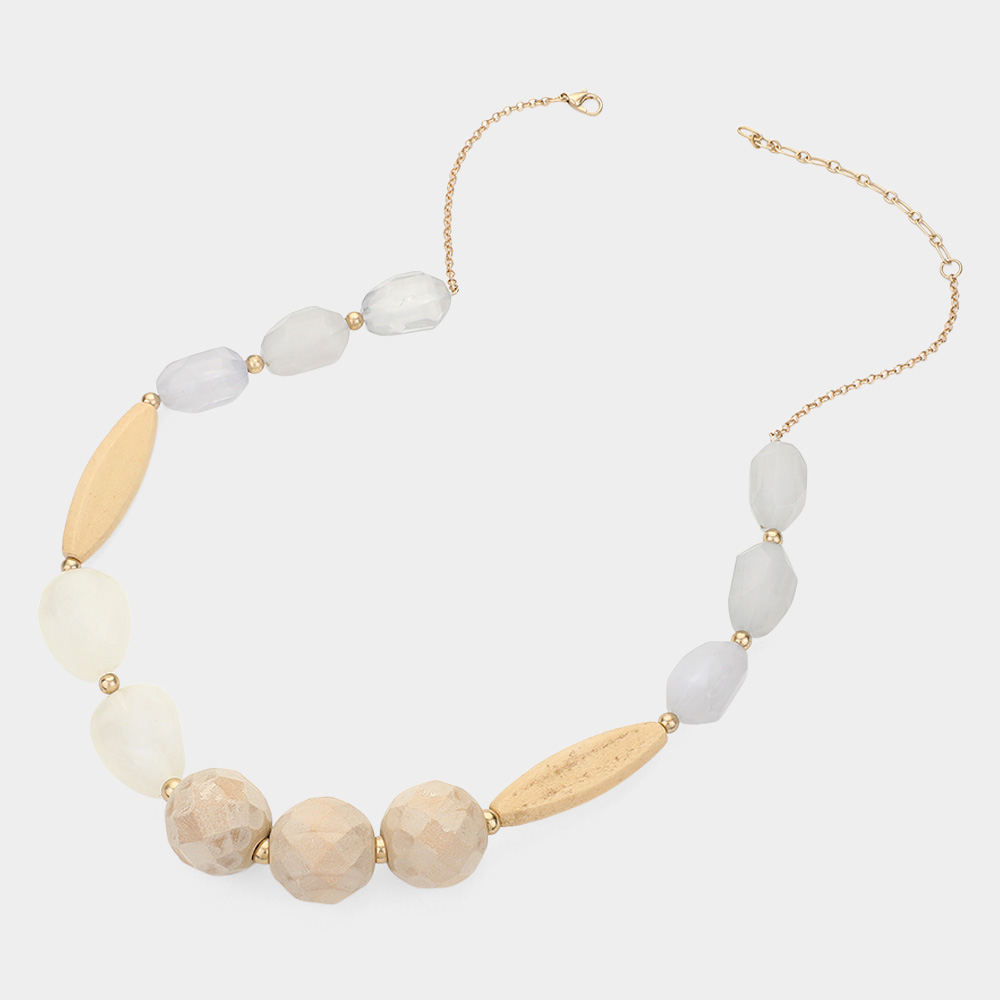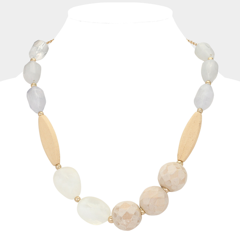 Boho Chunky Abstract Resin Wood Beaded Statement Necklace