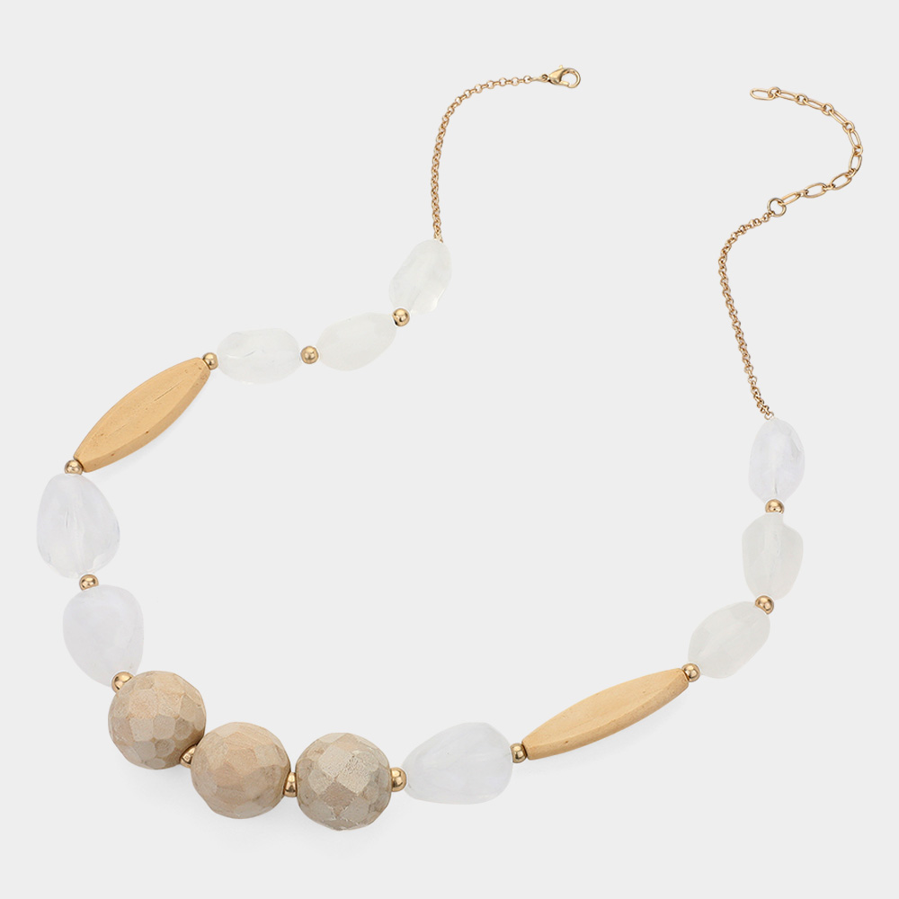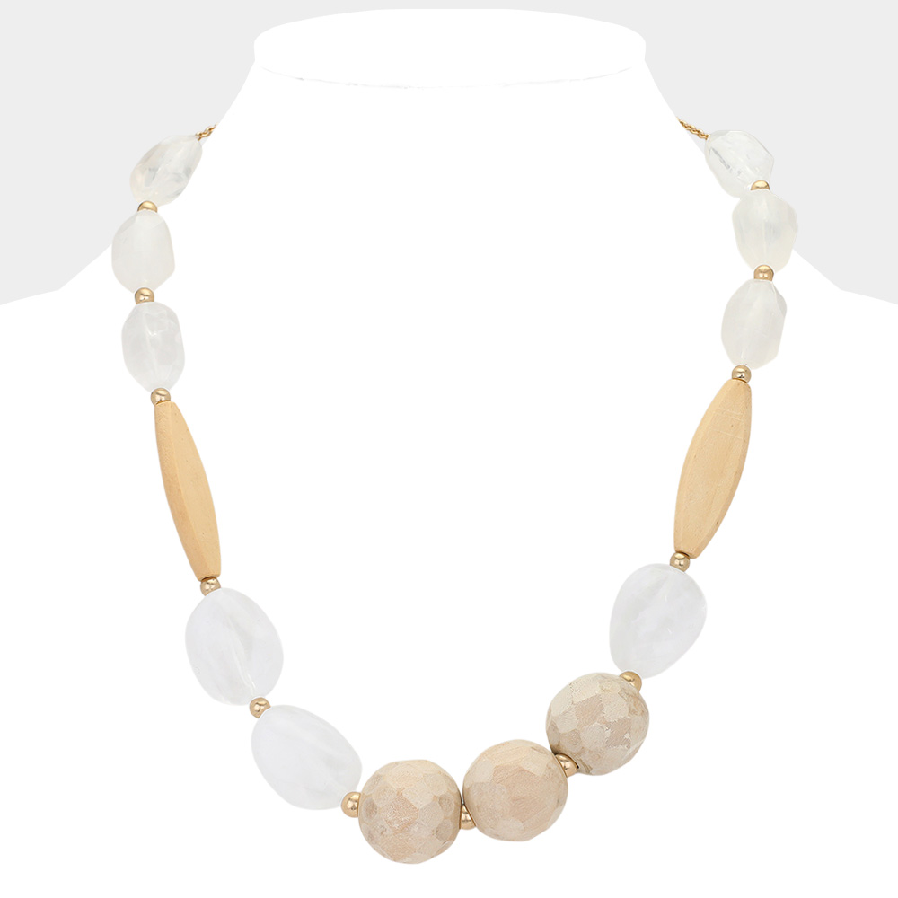 Wood Resin Bead Bib Necklace