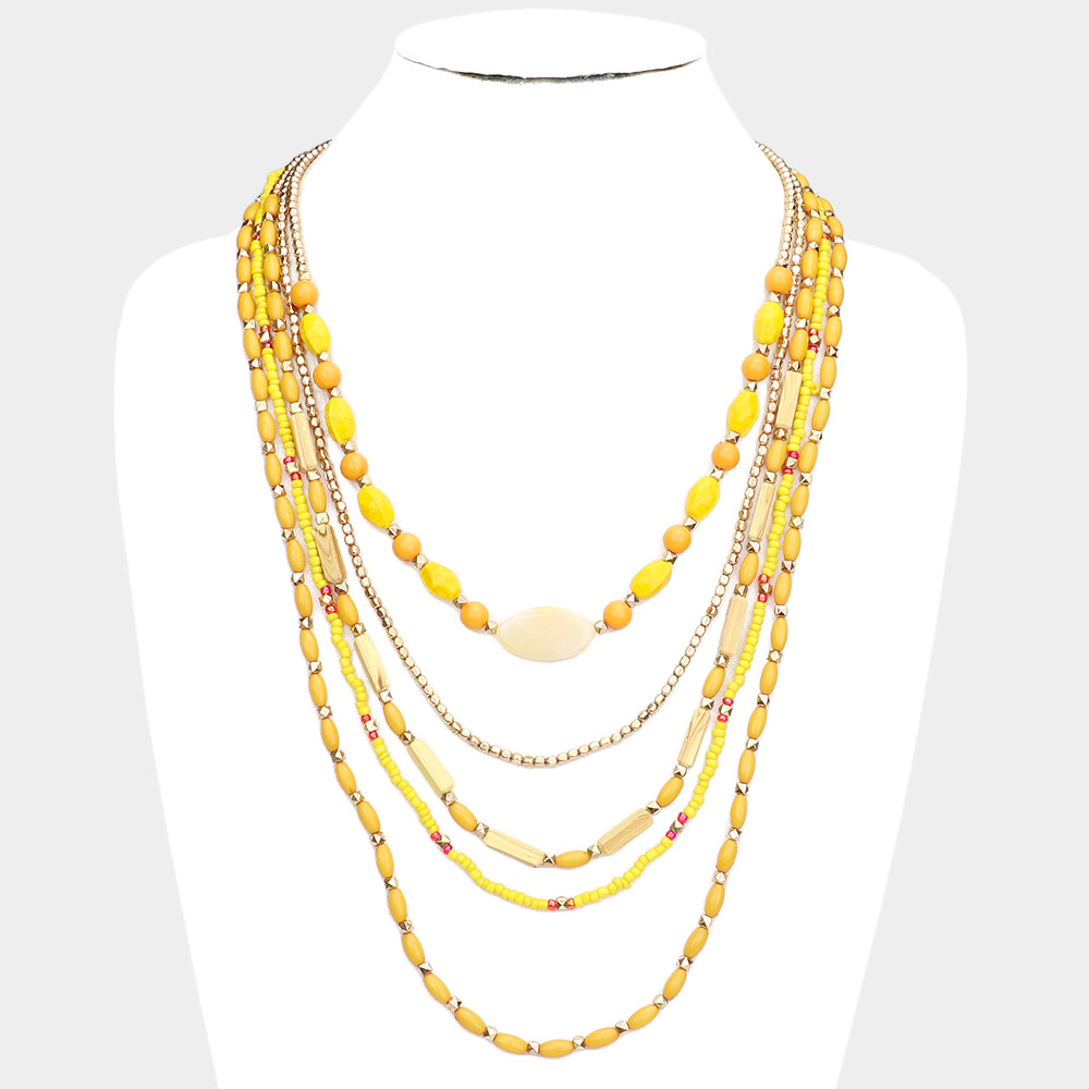 Chunky Wood Ball Metal Bar Beaded Stretch Multi Layered Bracelets