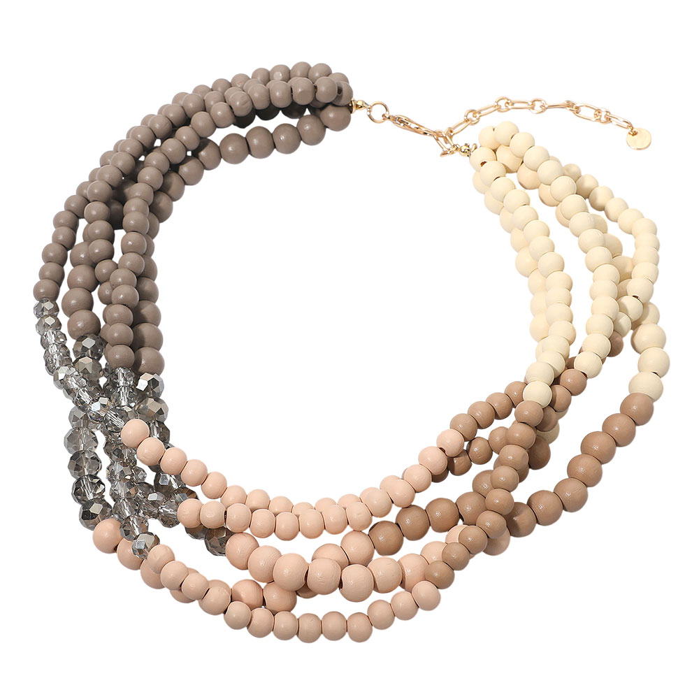 Wooden Ball Beaded Multi Layered Statement Necklace