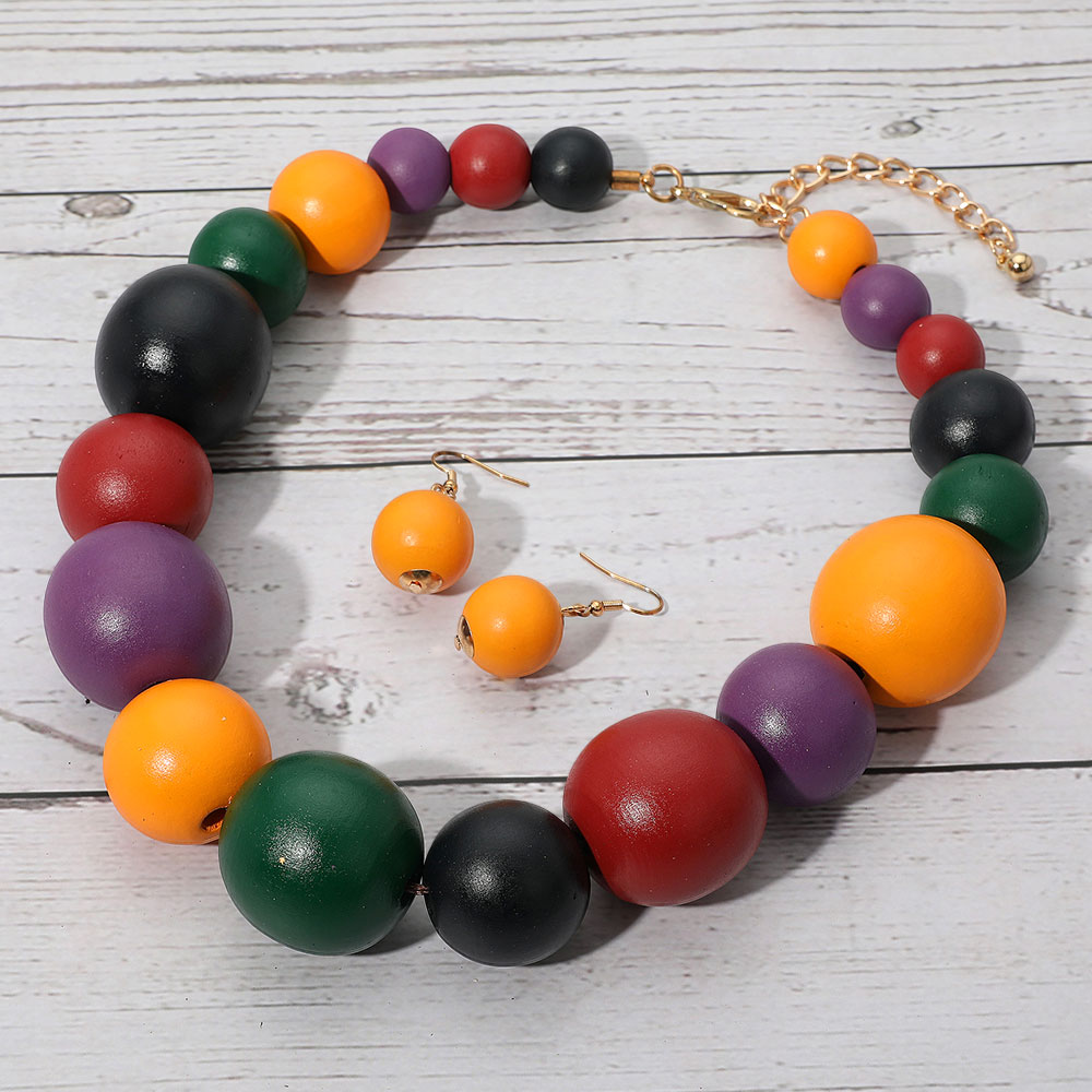 Wood Trimmed Open Teardrop Pendant Long Necklace
