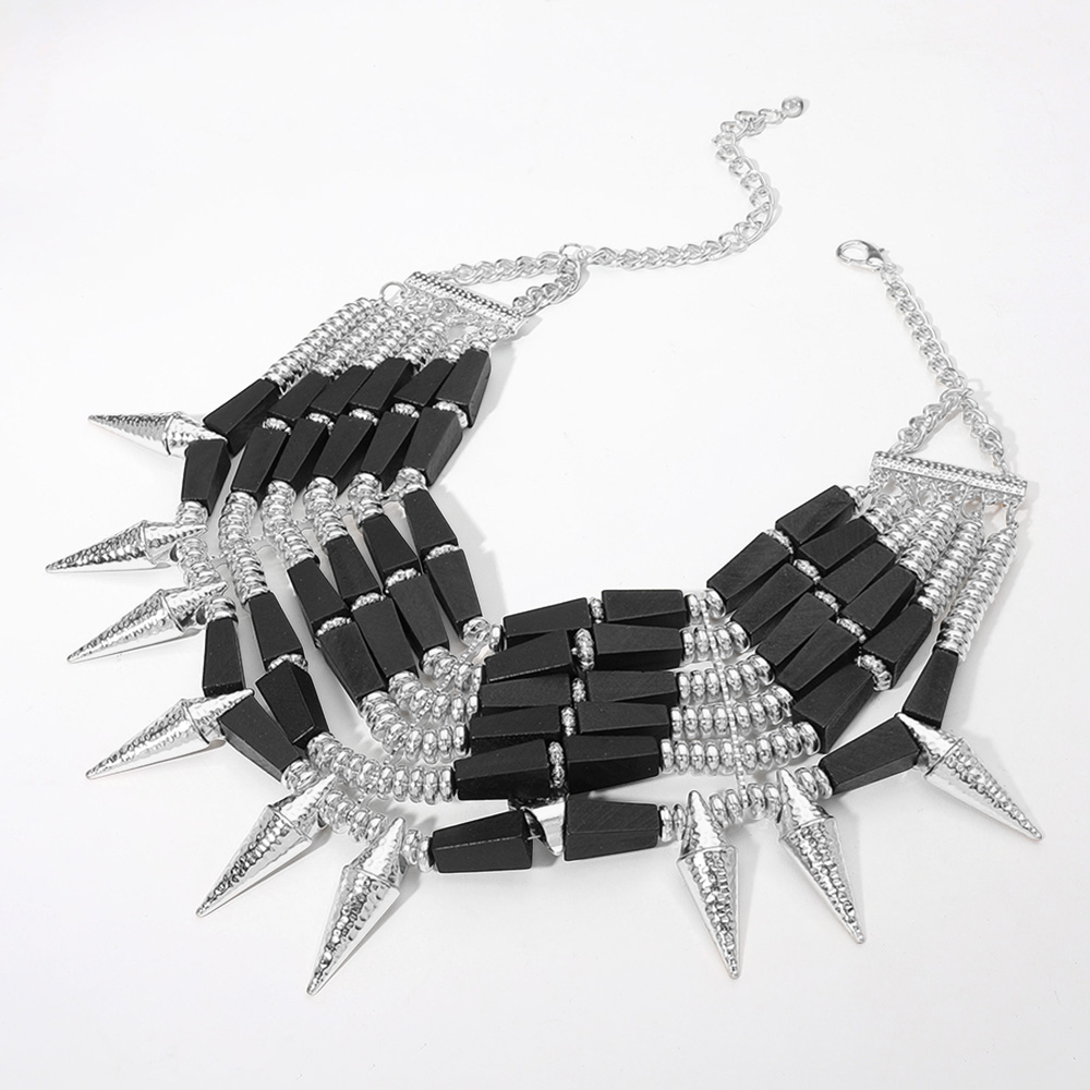 Wooden Metal Bat Beaded Spike Statement Necklace