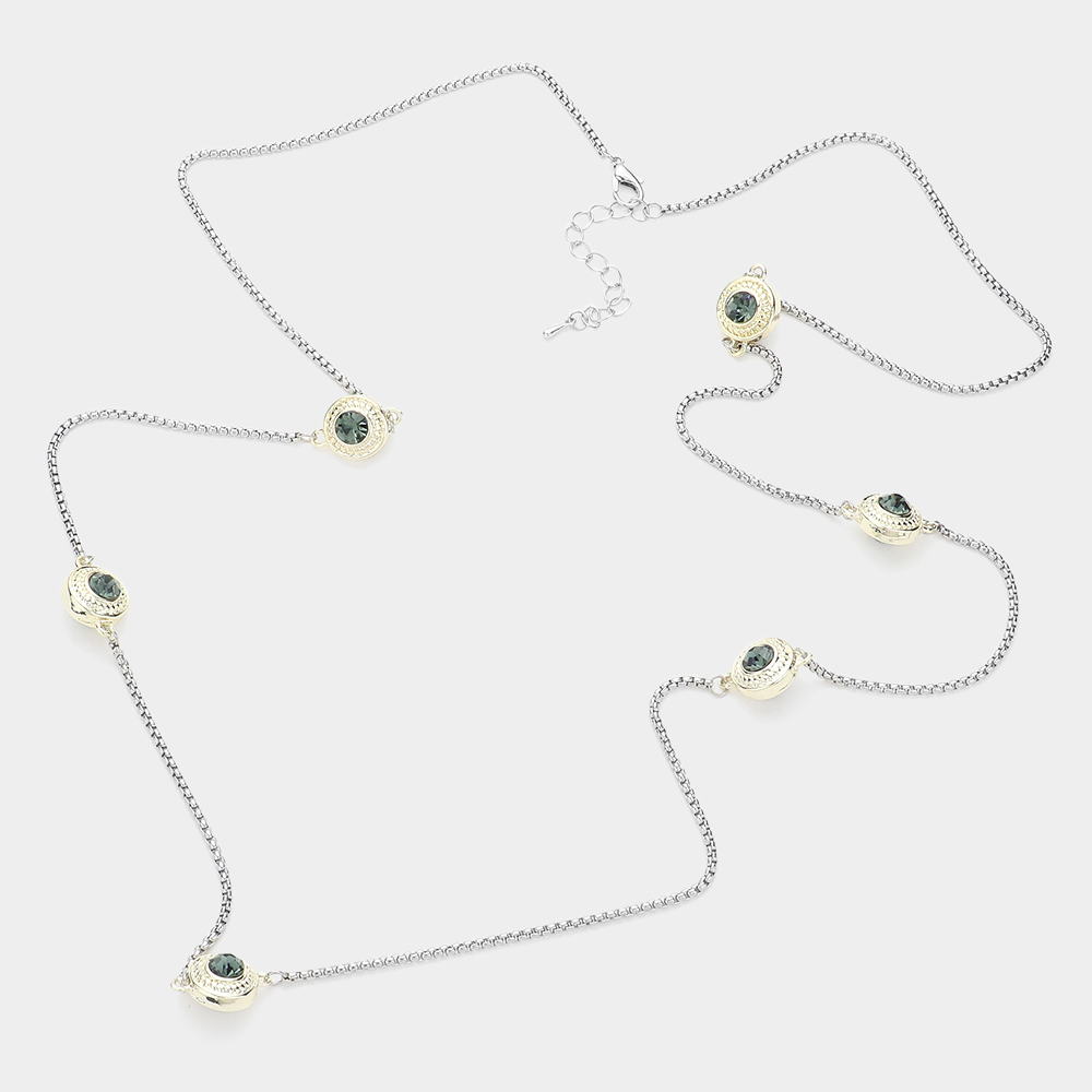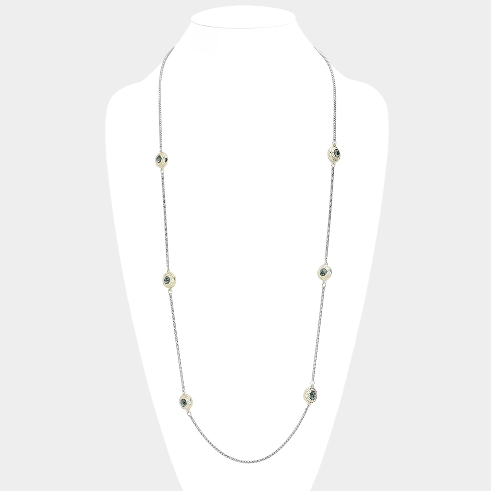 14K Gold Plated Two Tone Stone Paved Circle Pendant Station Long Necklace