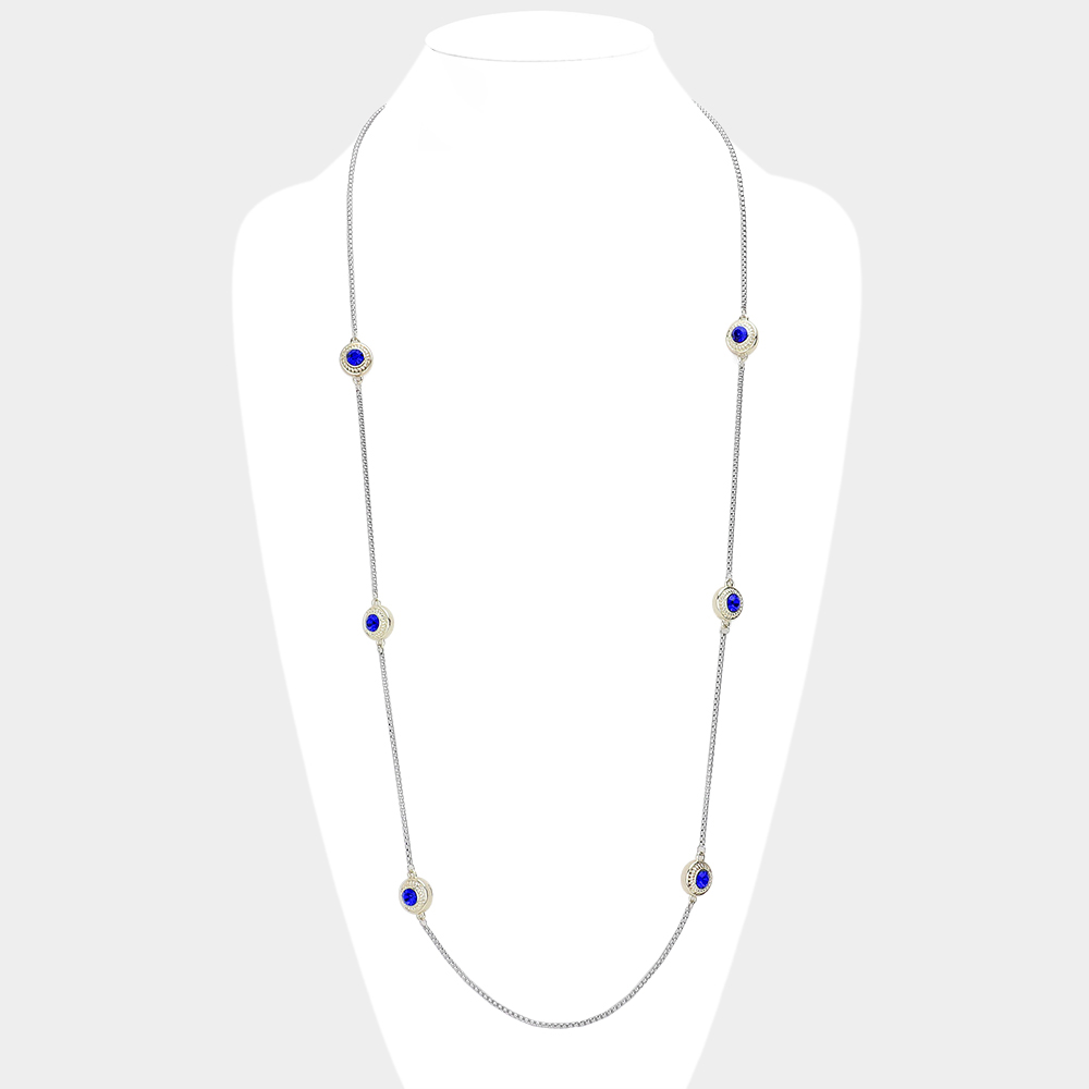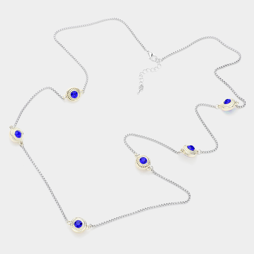 14K Gold Plated Two Tone Stone Paved Circle Pendant Station Long Necklace
