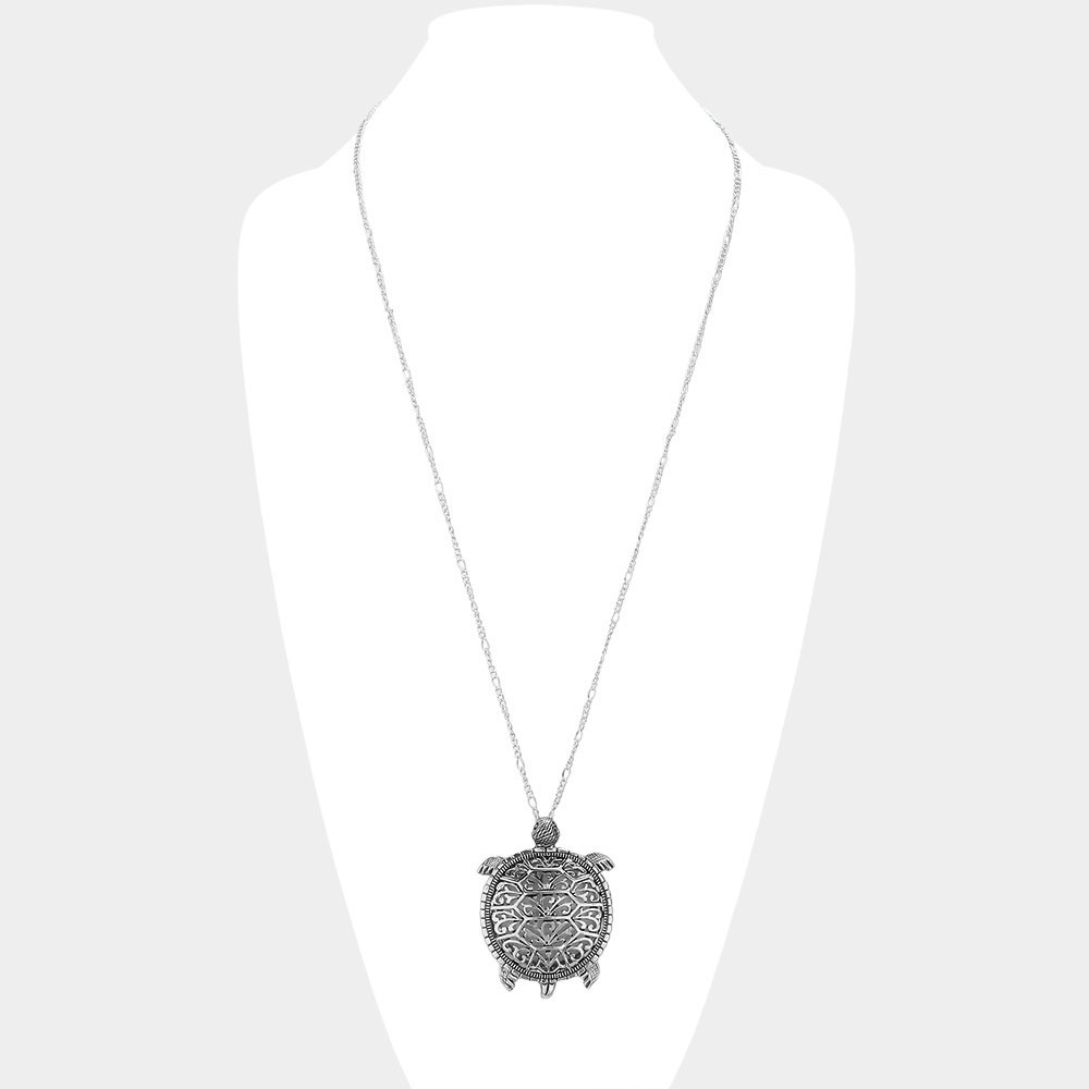 2-Layers Turtle Pendant with Glass Disc Necklace