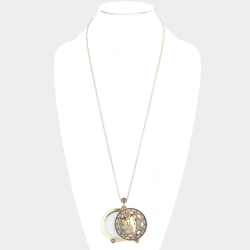 Antique Metal Arrow Magnifying Glass Pendant Long Necklace