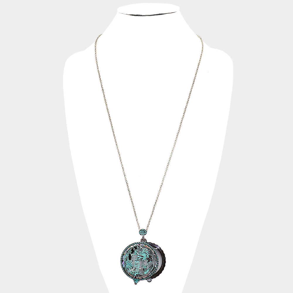 Antique Metal Mermaid Magnifying Glass Pendant Long Necklace