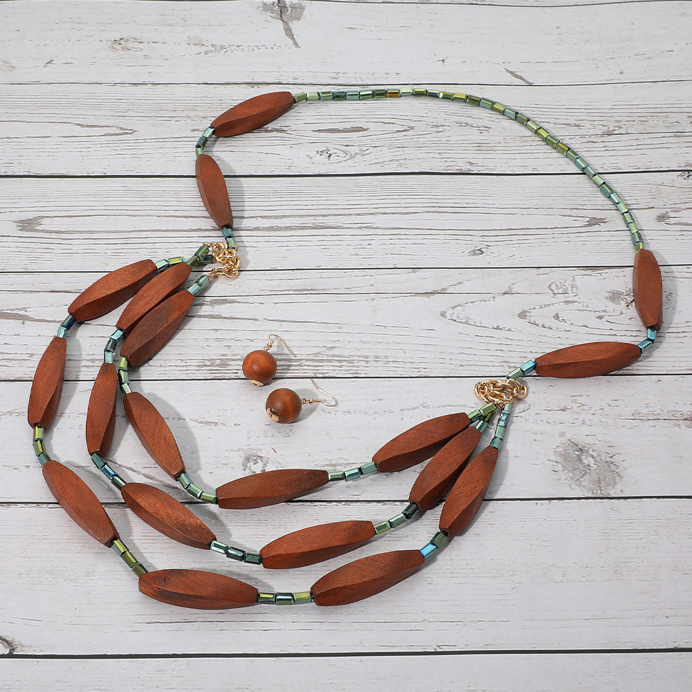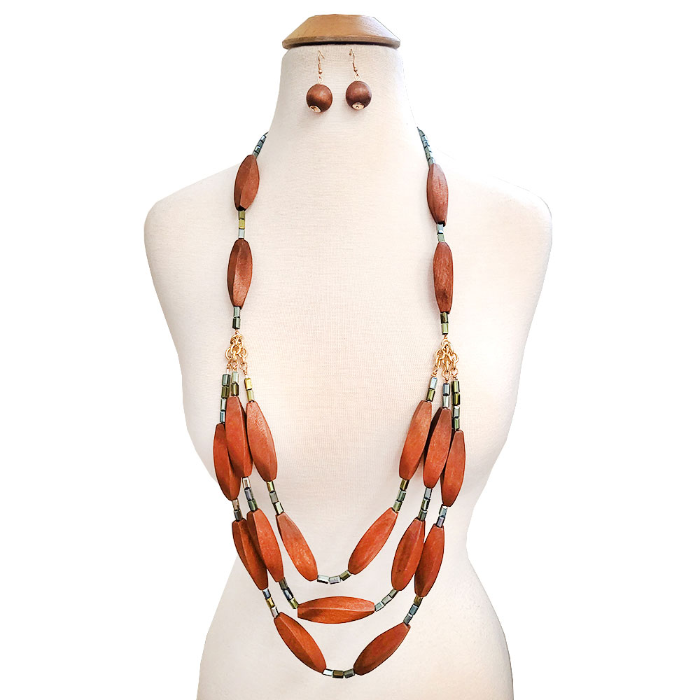 Details • Necklace Size : 38" L • Decor Size : 4" L • Earrings Size : 1.6" L • Brighten up your look with this multicolor layered beaded necklace featuring elongated beads in earthy and bold tones. Paired with matching stud earrings, this playful yet chic set is perfect for adding a vibrant, artistic touch to casual or festive outfits, making every style feel unique and fresh. • Lead and Nickel Compliant