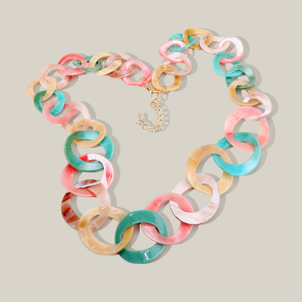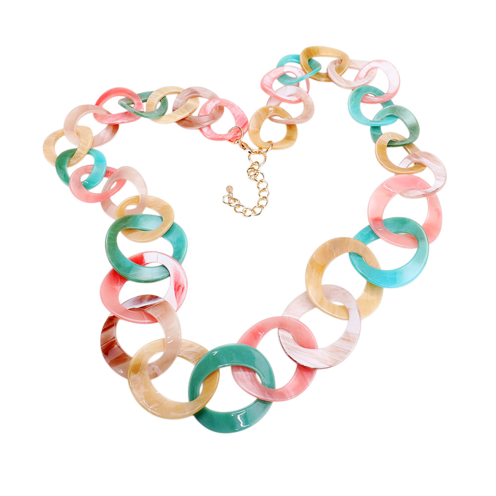 Geometric Chunky Sparkled Celluloid Acetate Plate Link Statement Necklace