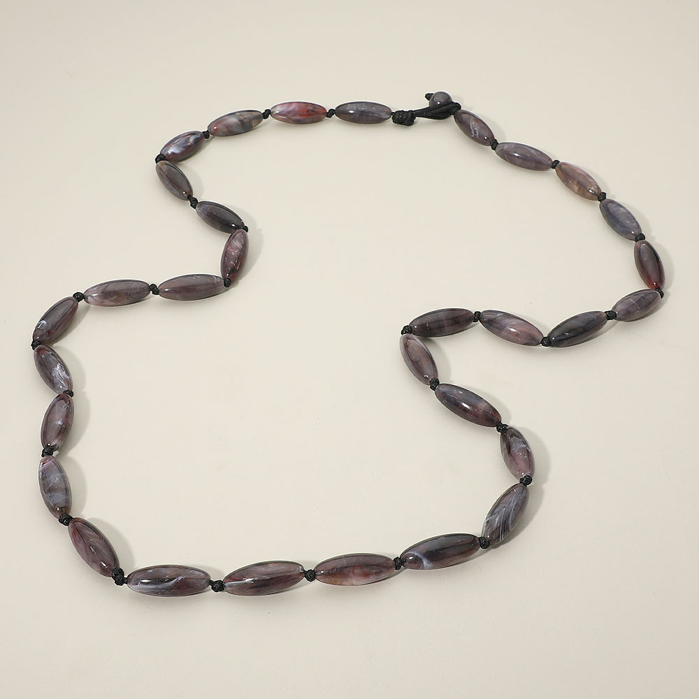 Details • Necklace Size : 46" L • Adjustable • Elegant long beaded necklace featuring smooth oval beads with a polished finish. Designed with an adjustable length for versatile styling, this chic statement piece adds a touch of sophistication and contemporary flair to both casual and dressy looks. • Lead and Nickel Compliant