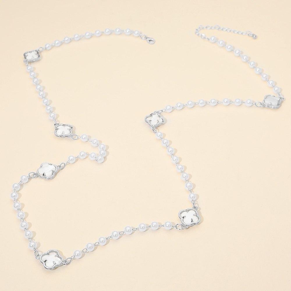 Clear Quatrefoil Cluster Station Pearl Long Necklace