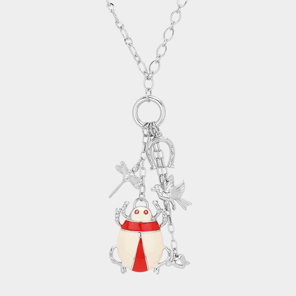 Enamel Ladybug Metal Bird Dragonfly Heart Horseshoe Pendant Long Necklace