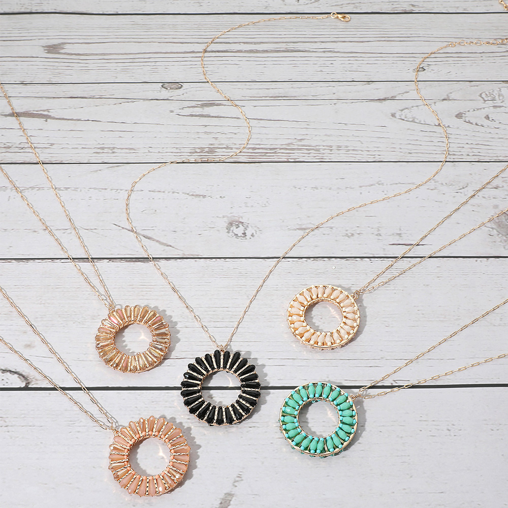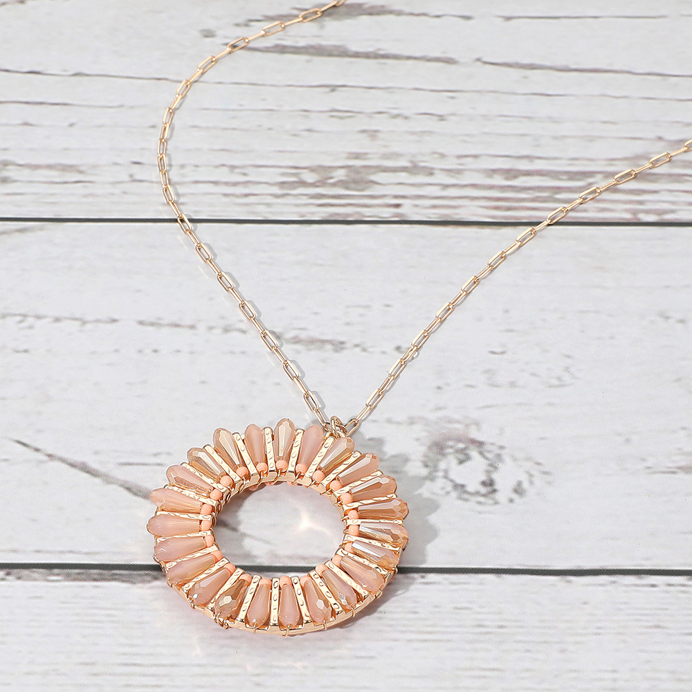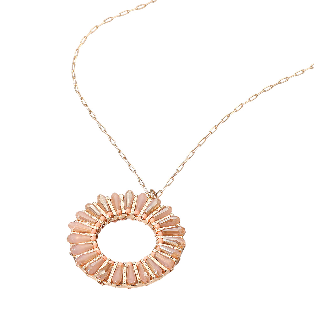 Details • Necklace Size : 30" + 3.5" L • Pendant Size : 1.6" X 1.8" • Elegant necklace featuring a circular pendant with radiating accents that create a sunburst-inspired design. A refined accessory for adding modern flair to both everyday and special occasion outfits. • Lead and Nickel Compliant