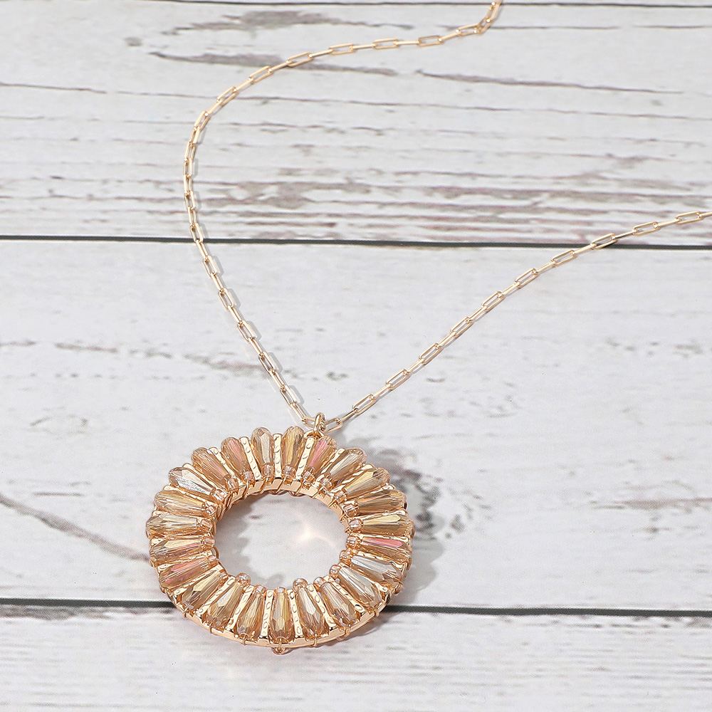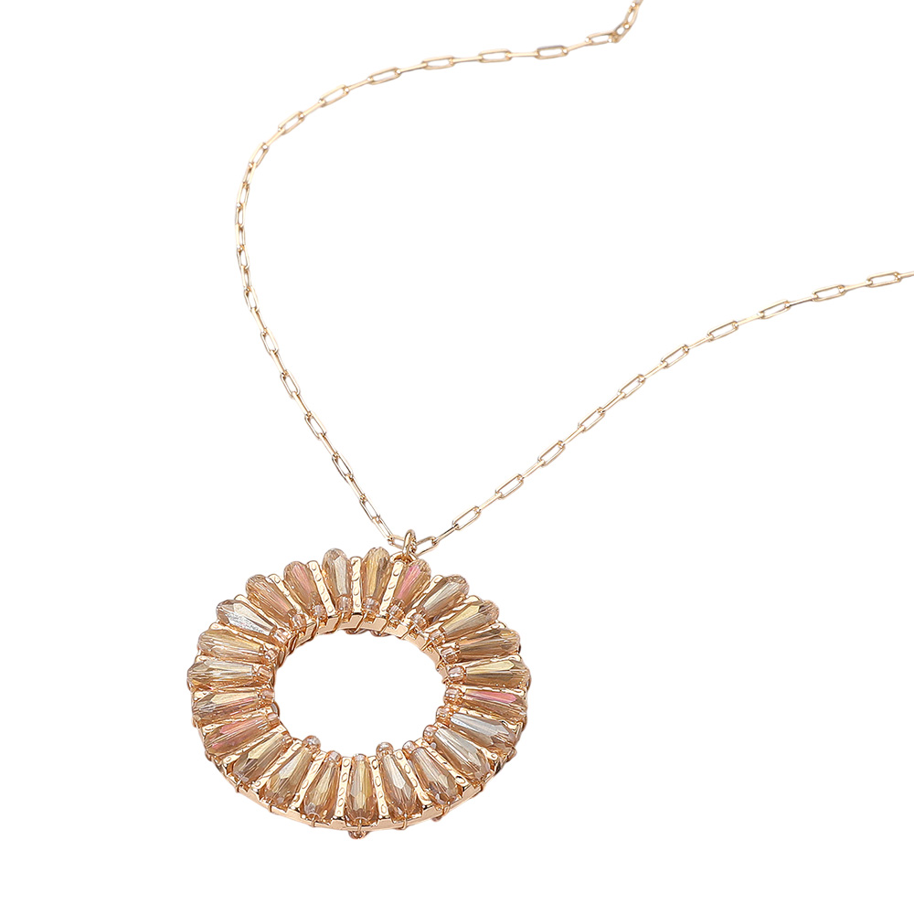 Details • Necklace Size : 30" + 3.5" L • Pendant Size : 1.6" X 1.8" • Elegant necklace featuring a circular pendant with radiating accents that create a sunburst-inspired design. A refined accessory for adding modern flair to both everyday and special occasion outfits. • Lead and Nickel Compliant