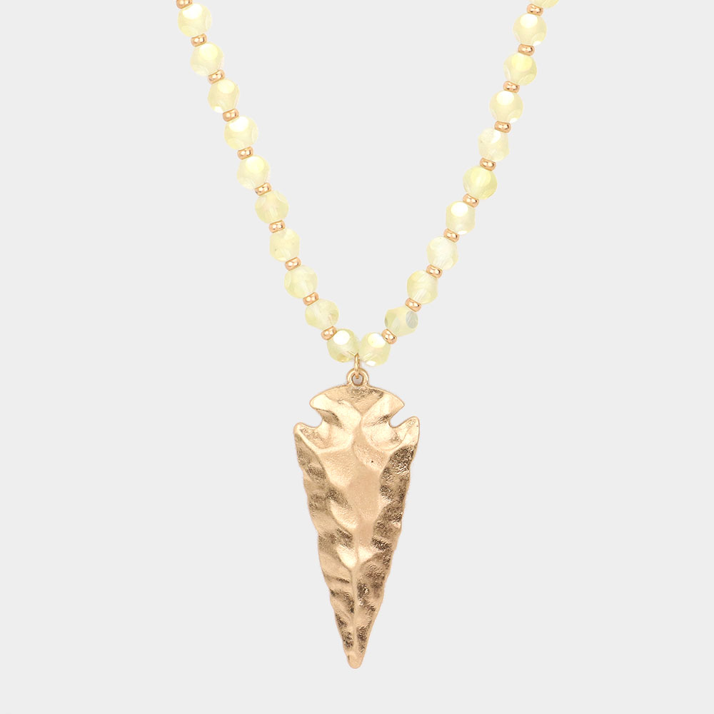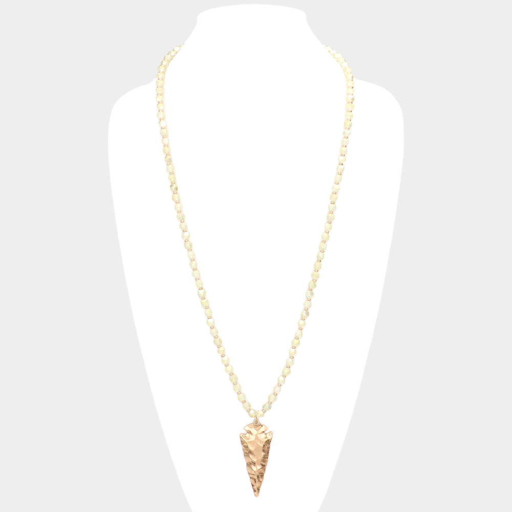 Hammered Metal Arrow Pendant Faceted Beads Long Necklace